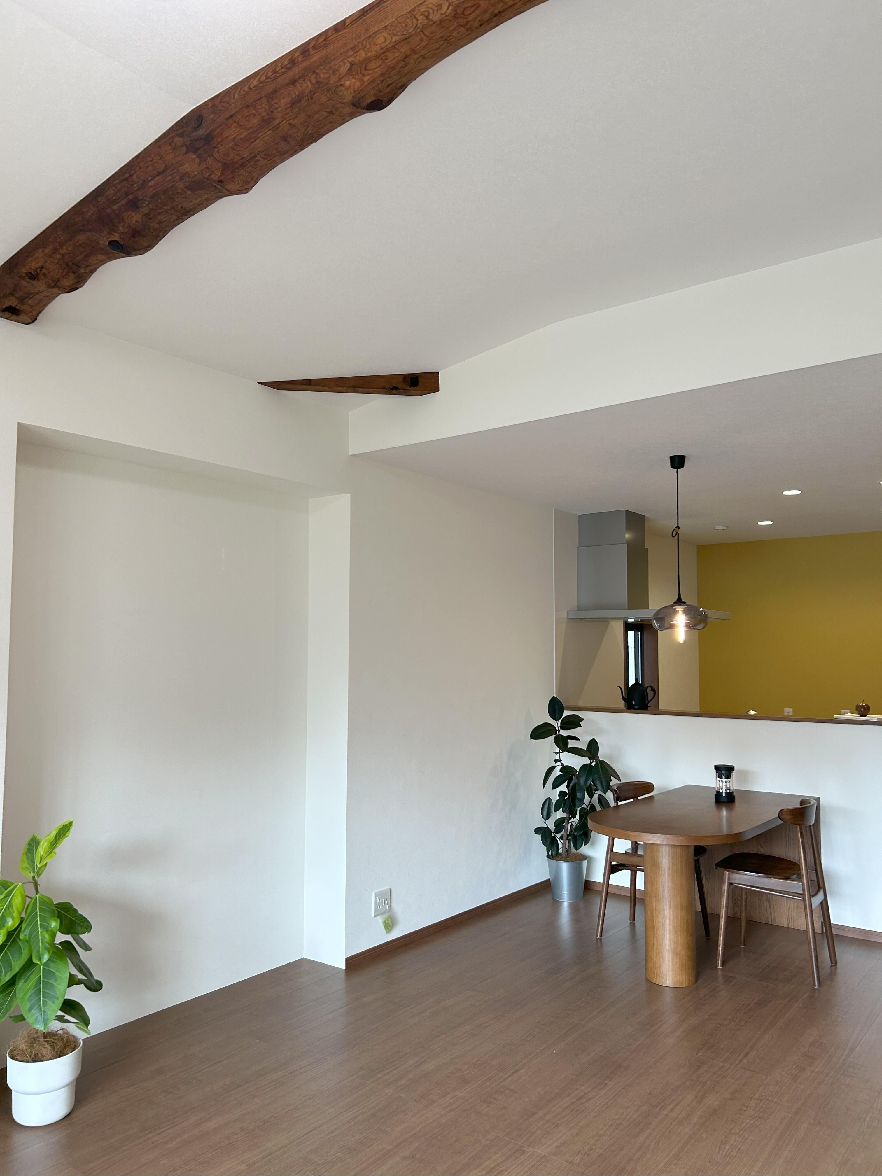 まるで我が家じゃないみたいで驚きました!ご提案いただいた梁を見せるデザインにして本当によかったです。黄色のアクセントクロスもお気に入りです。
