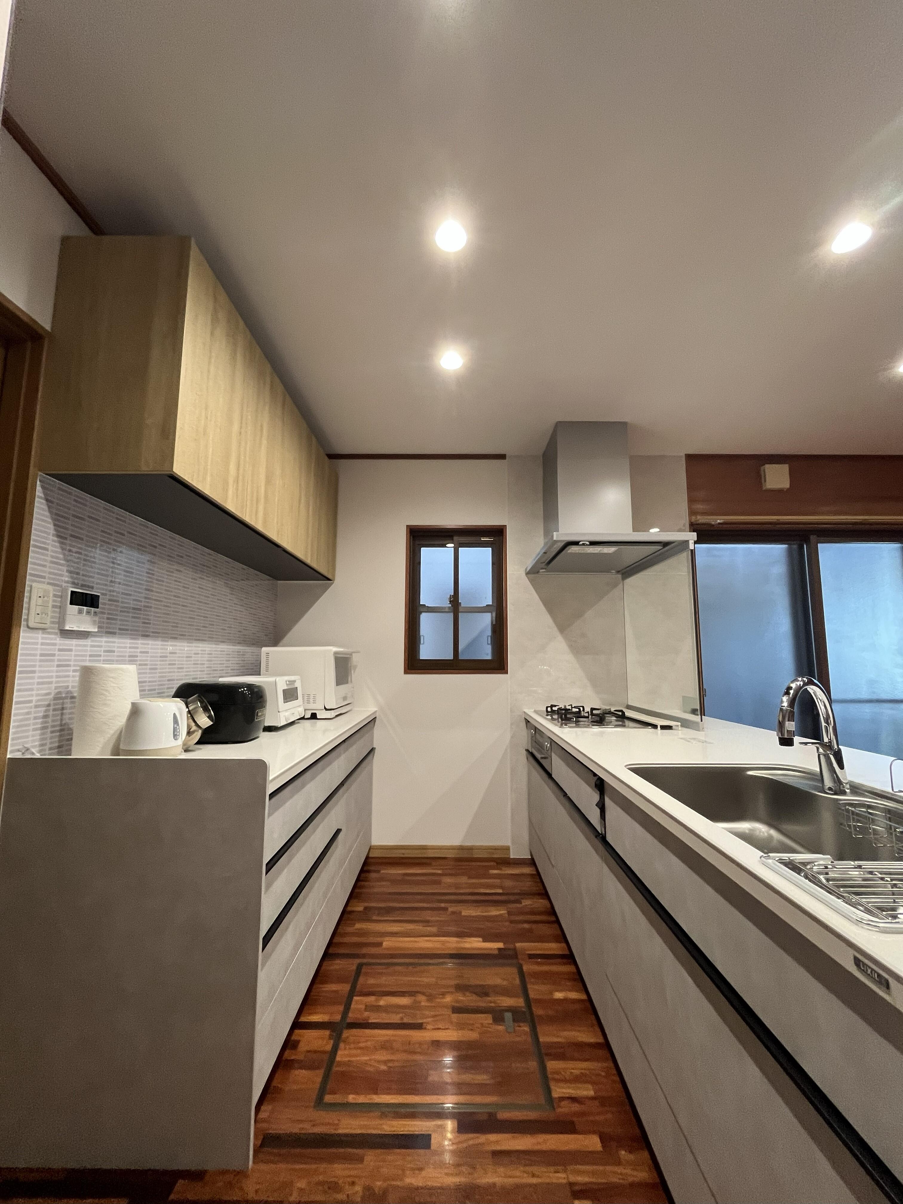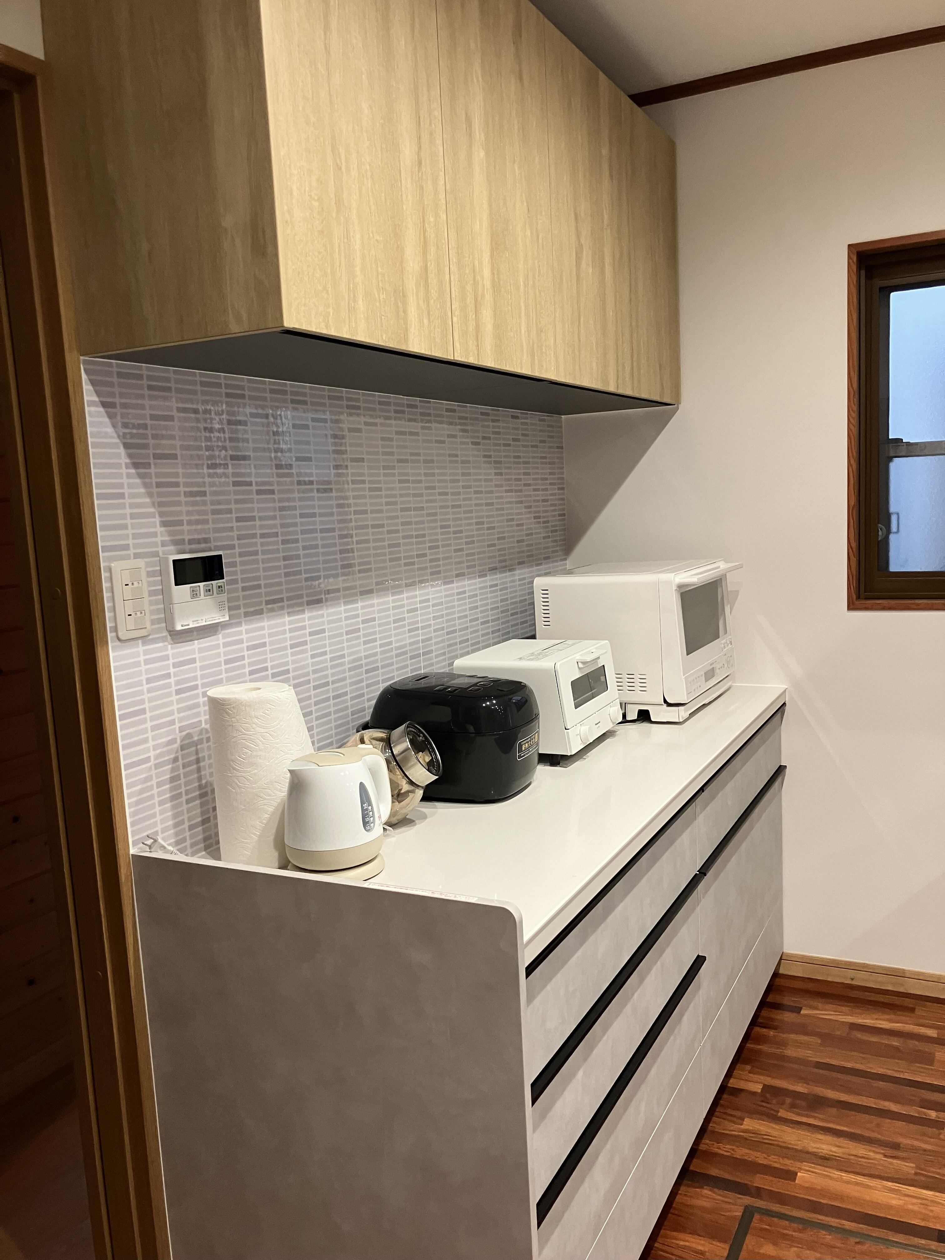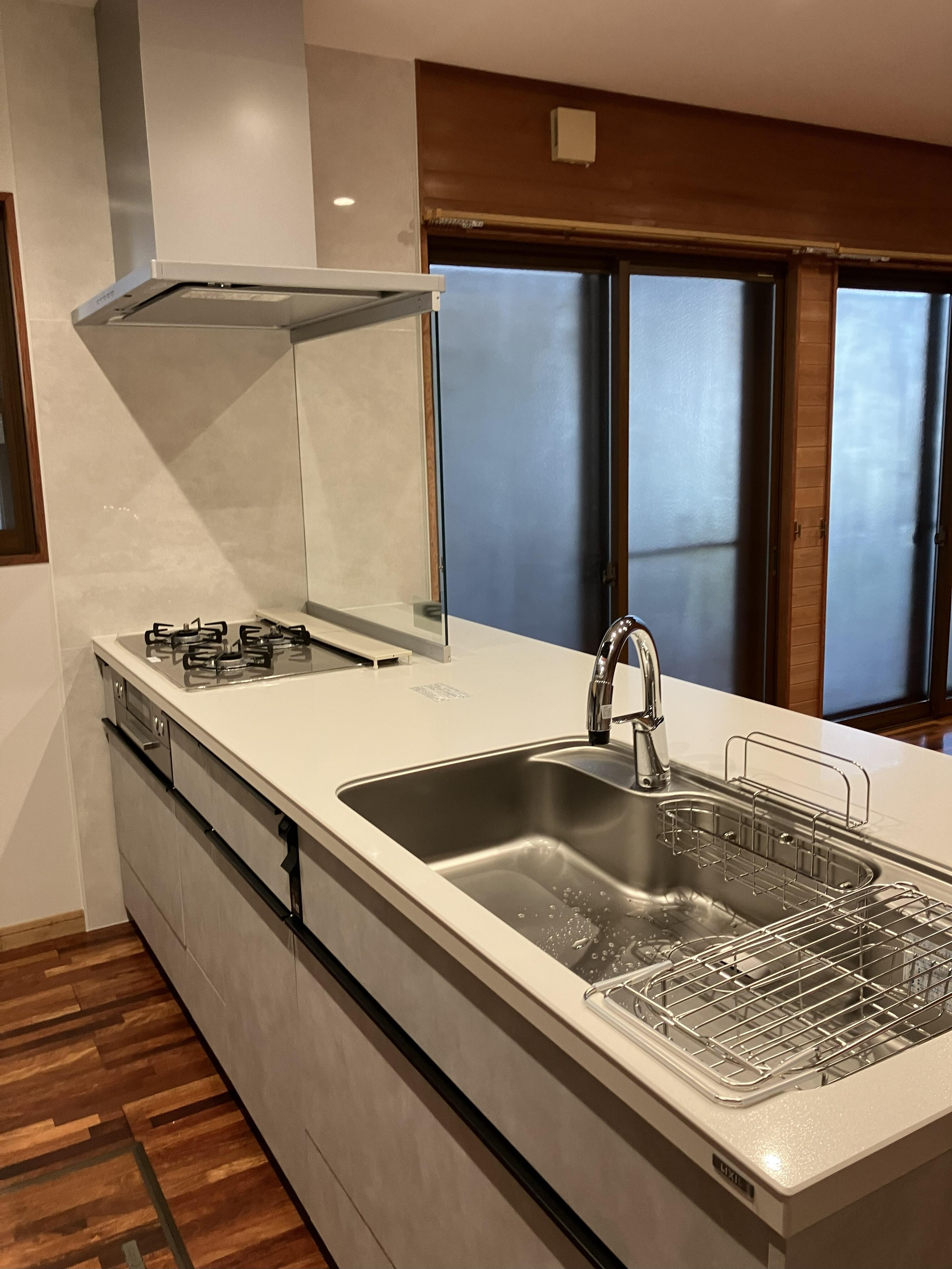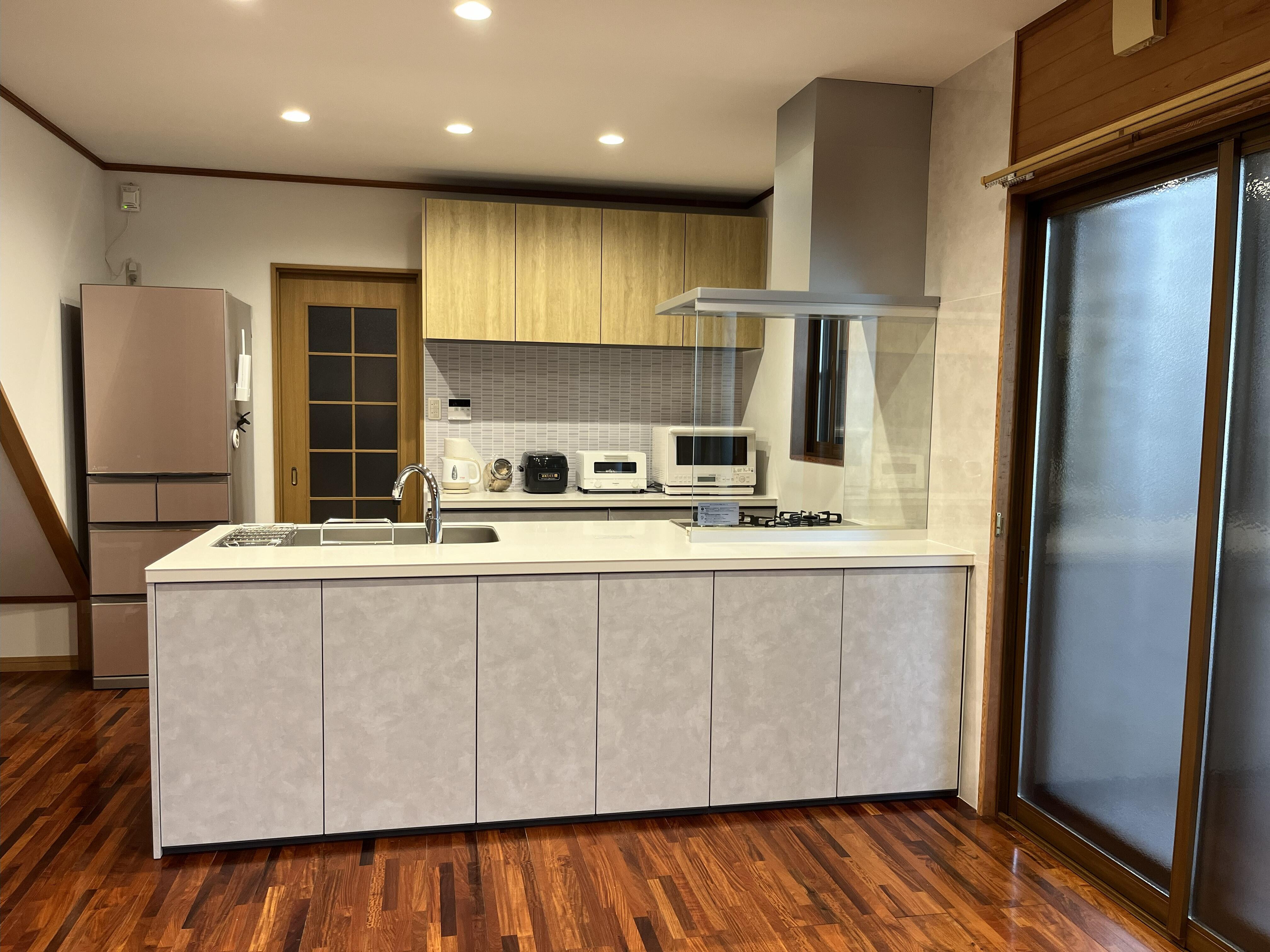 【リシェルで叶える理想のキッチン】 壁と造作収納で仕切られていた空間を、ペニンシュラ型のシステムキッチンへ。 LDKがゆるやかにつながる開放的な空間に生まれ変わりました。 リシェルのセラミックワークトップが、上質な存在感を放ちます。