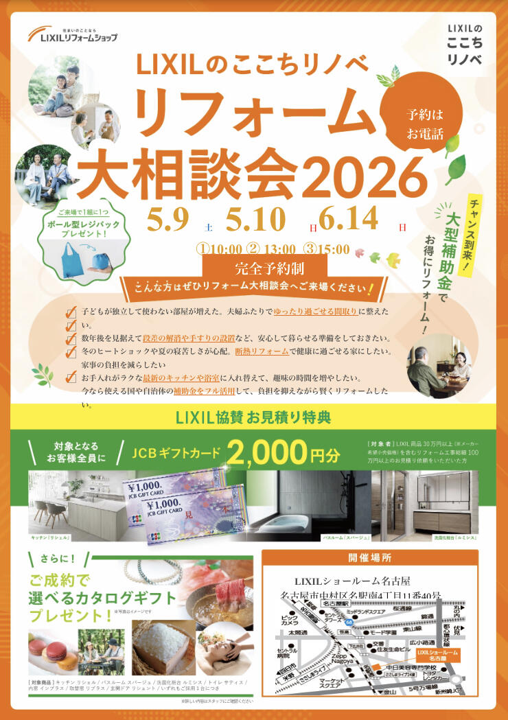**LIXILショールーム名古屋にて「リフォーム大相談会」**を開催いたします。
