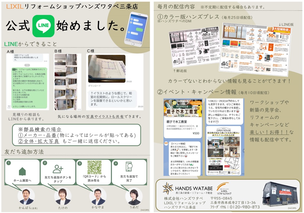 <「ハンズワタベ三条店 公式LINEアカウント」を開設しました!>