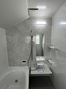 斜め天井で高さを確保!快適な浴室へ