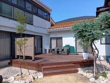 中庭で家族と集うステージ作成リフォーム