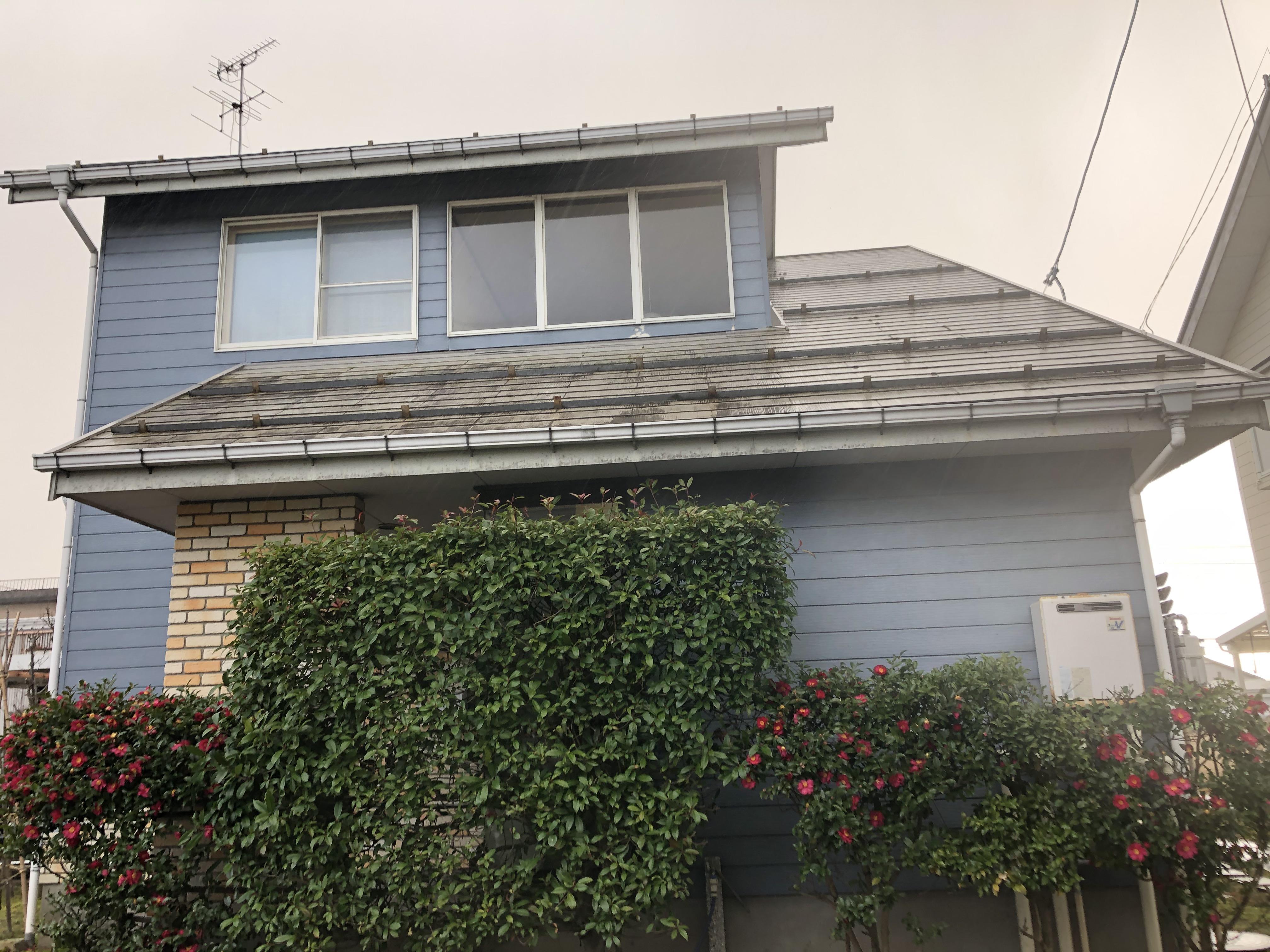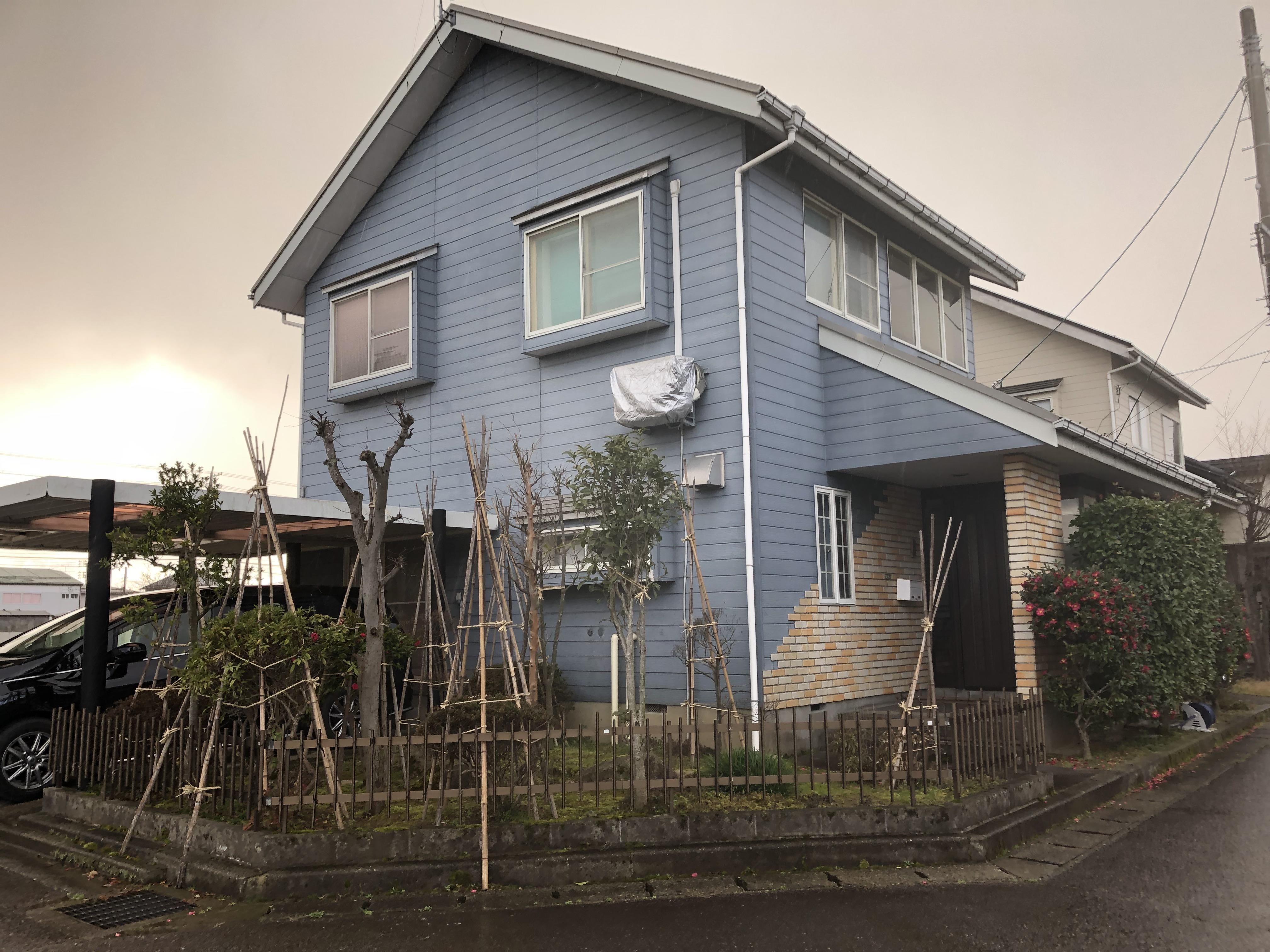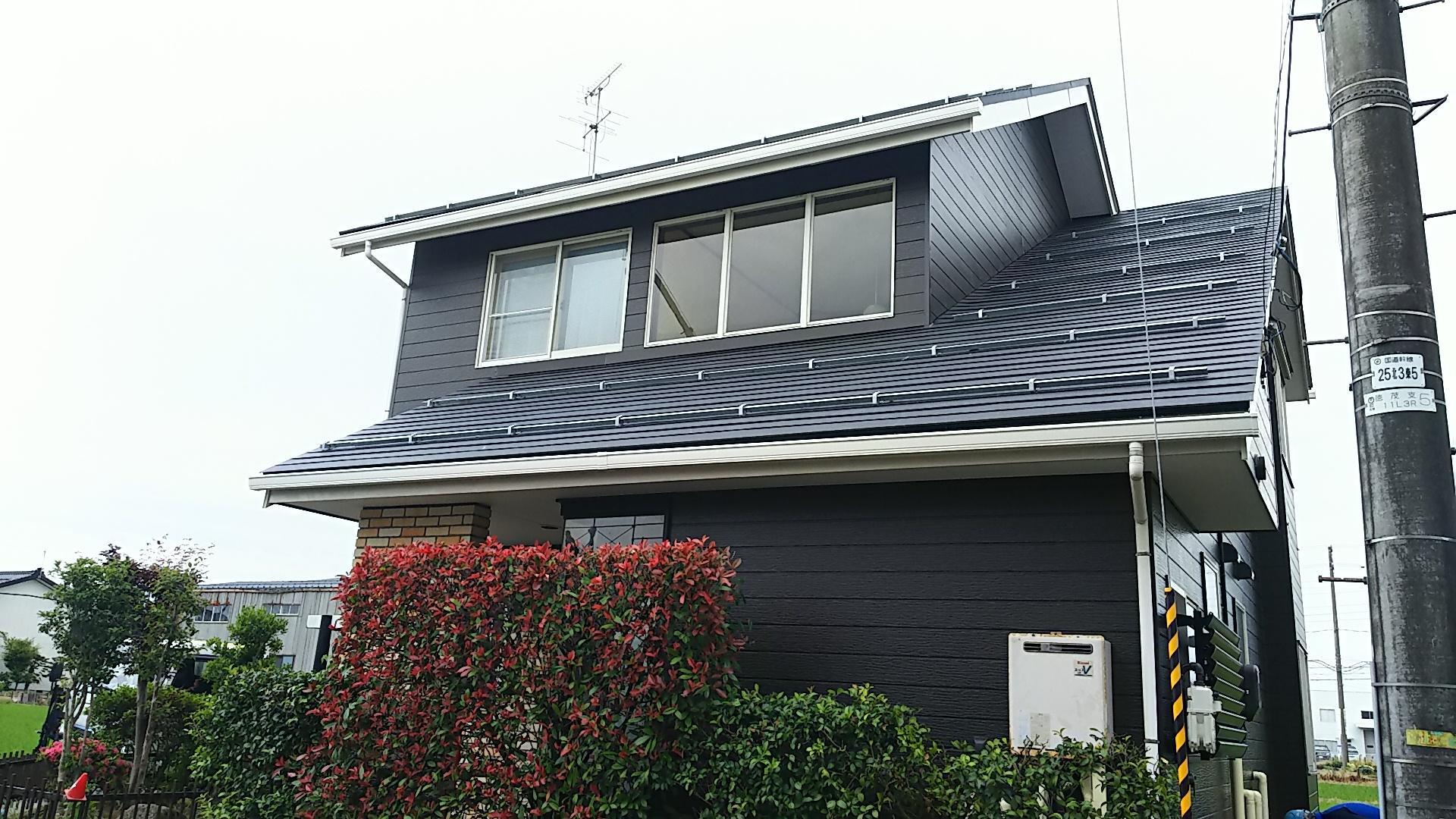 当初提案では外壁を張替えの想定で進めていましたが、屋根を含めた相対的な予算考慮と劣化度をふまえ、優先順位を考慮した結果、屋根は新たな素材・外壁は塗装という選択を提案して工事をさせてもらいました。ブルー系のイメージから一新し、モダンな雰囲気にする事で落ち着いた外装に仕上がりました。