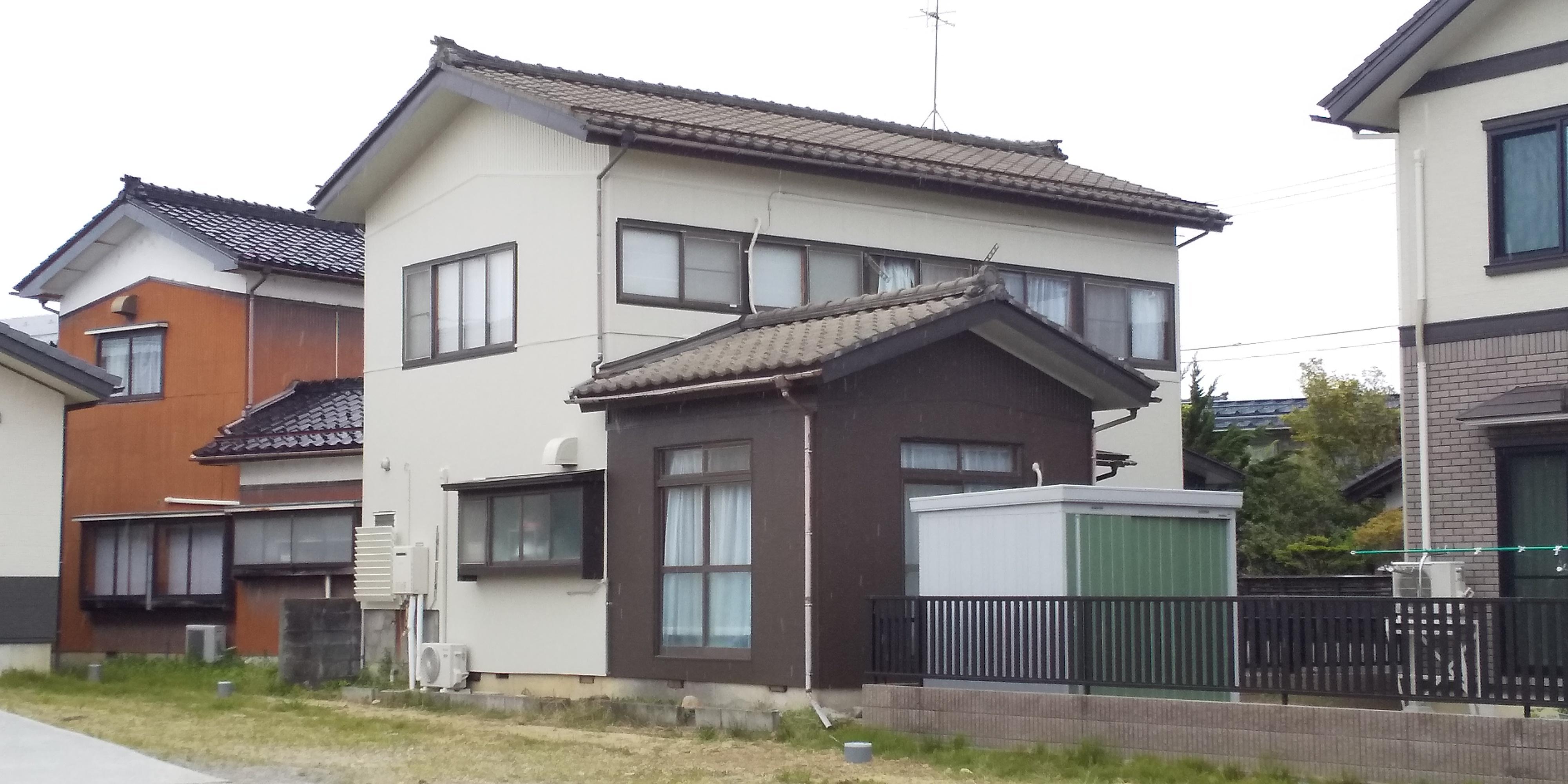 予算の範囲内で、外周部全体を改修する事を前提に、 外壁を張替えする部分や、程度の良い場所は塗装として提案しました。 また庇部分が傷んでましたが、修復するコストを考え、 撤去して見た目スッキリとさせました。