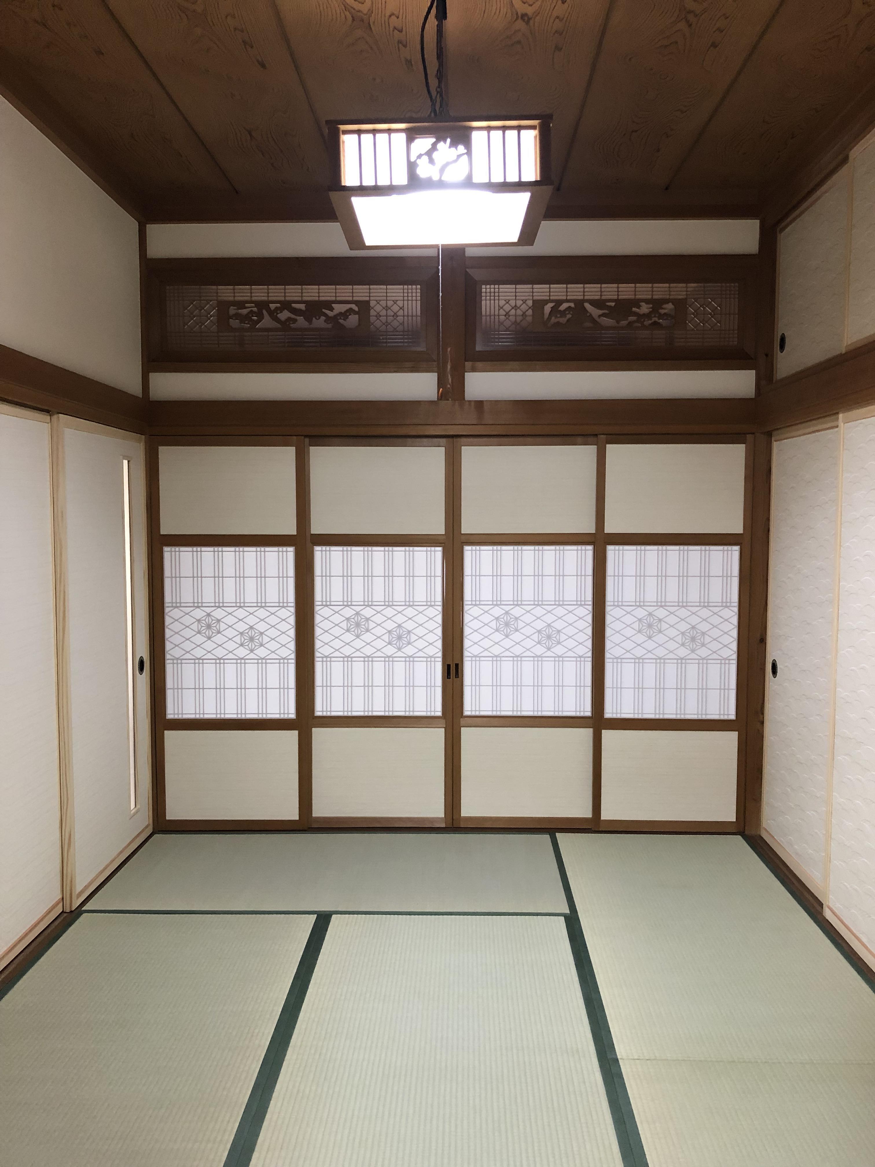 ・2Fには息子さん夫婦が寝室として使用する為に室内をリフォーム。壁は既存の上にクロスを貼り清潔間を持たせました。床は畳からフローリングへの変更、そして天井は木の板から洋風な装いにする為、クロスを貼貼りました。更に多少の温熱環境完全の為、窓ガラスは高性能断熱サッシを入れました。明るい雰囲気になりそして外気温の影響を緩和する事が出来ました。