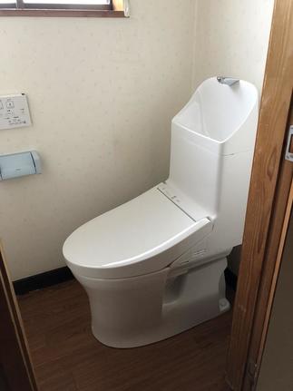 トイレの内装は、その空間に見合った壁紙や床色の提案を行いました。 お客様にも綺麗になったと喜びの声を頂きました。 また、洗面化粧台のタッチレス水栓は自分自身も初めて設置させて頂き、 コロナ禍ということも踏まえて、今後提案したい商品だなとも感じました。