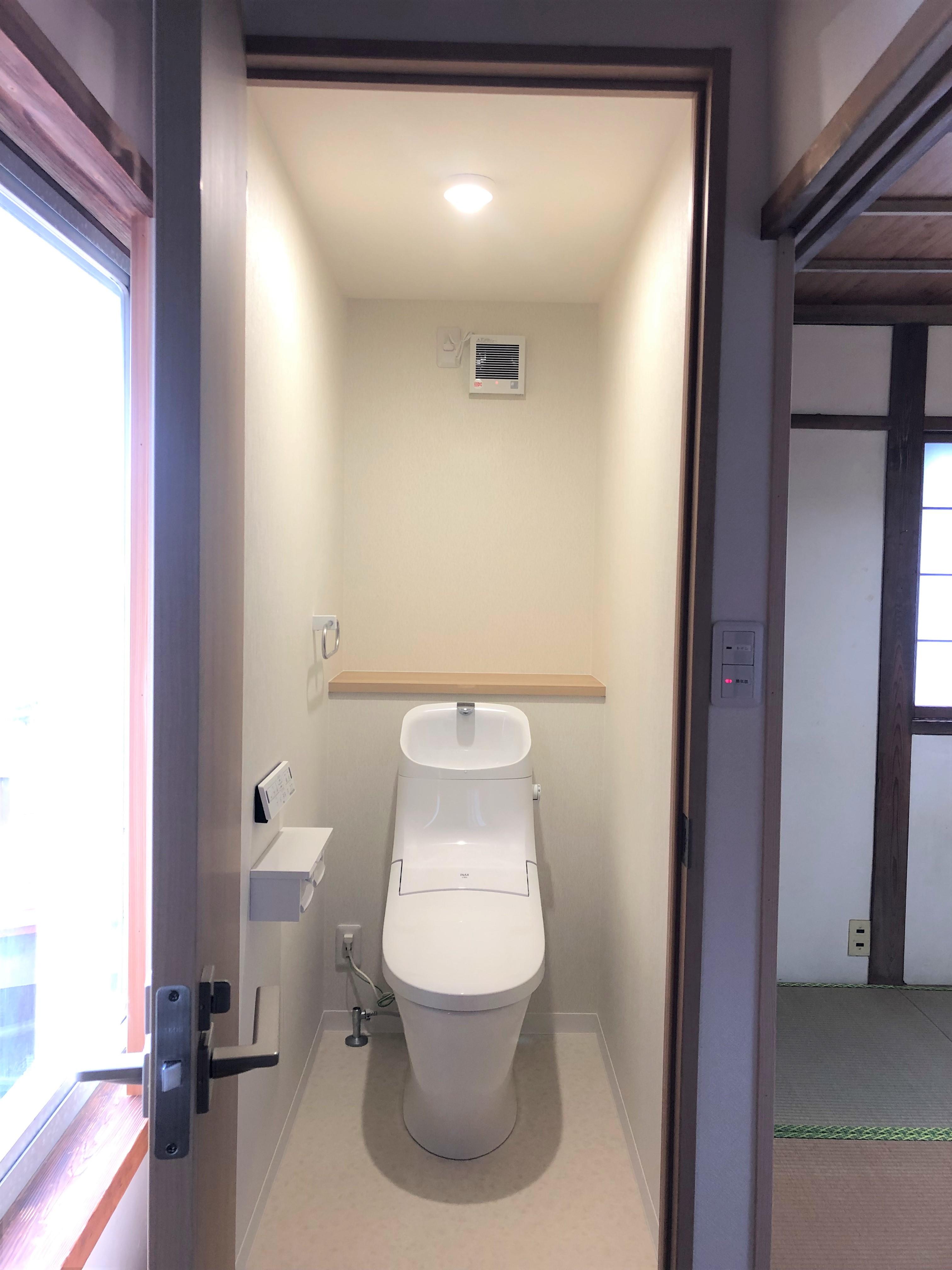 2階のトイレ新設は、配管経路を考えるのに苦労しました。上司や水道屋さんとも相談し当日の解体や配管も綱渡りでしたが、何とか形にすることができました。 内装も元より綺麗になり良かったです。