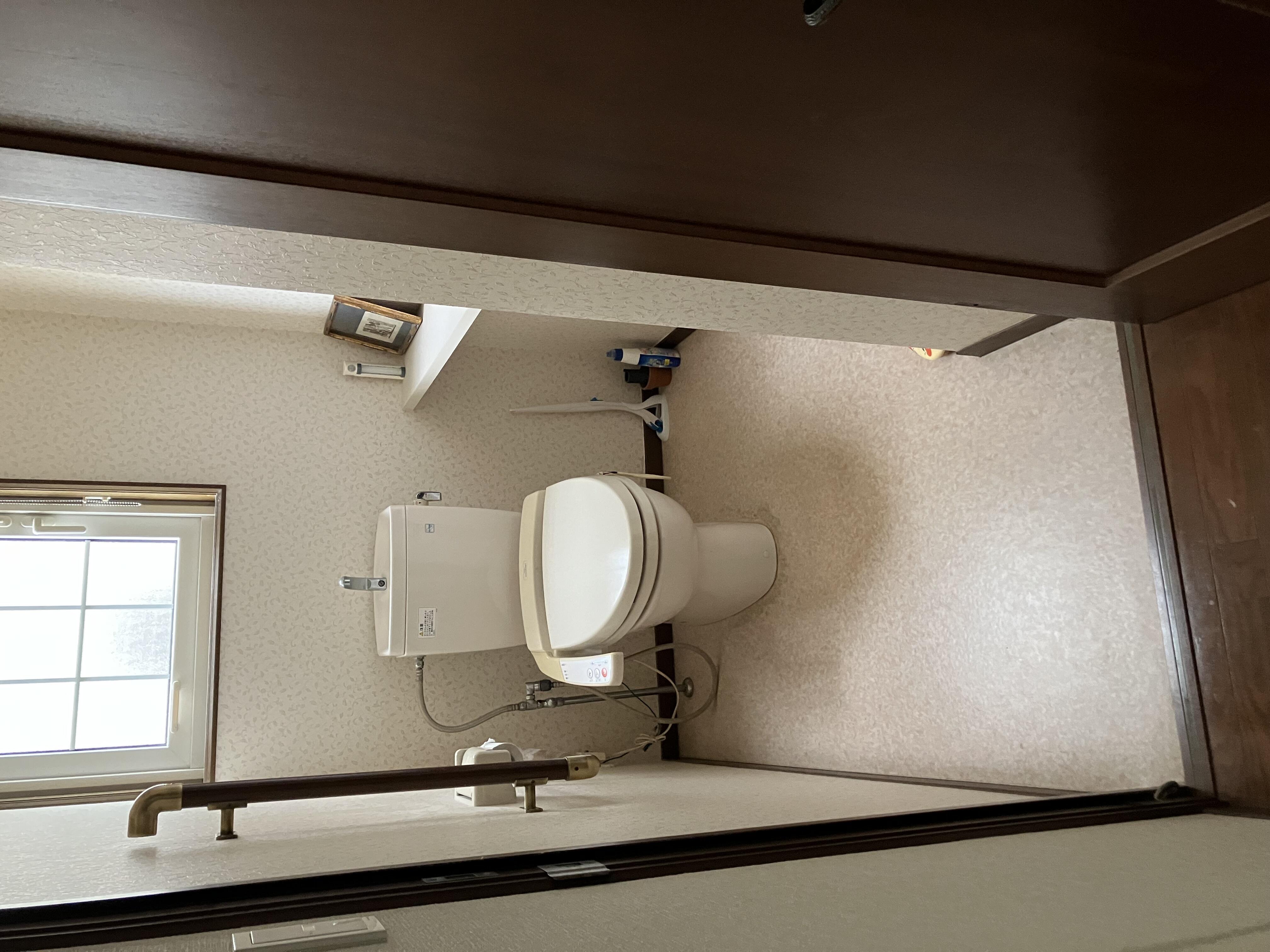もともとは白っぽく明るい内装のトイレでしたが、壁紙とクッションフロアを貼り替えて、木質溢れる落ち着きのある空間へと変わりました。