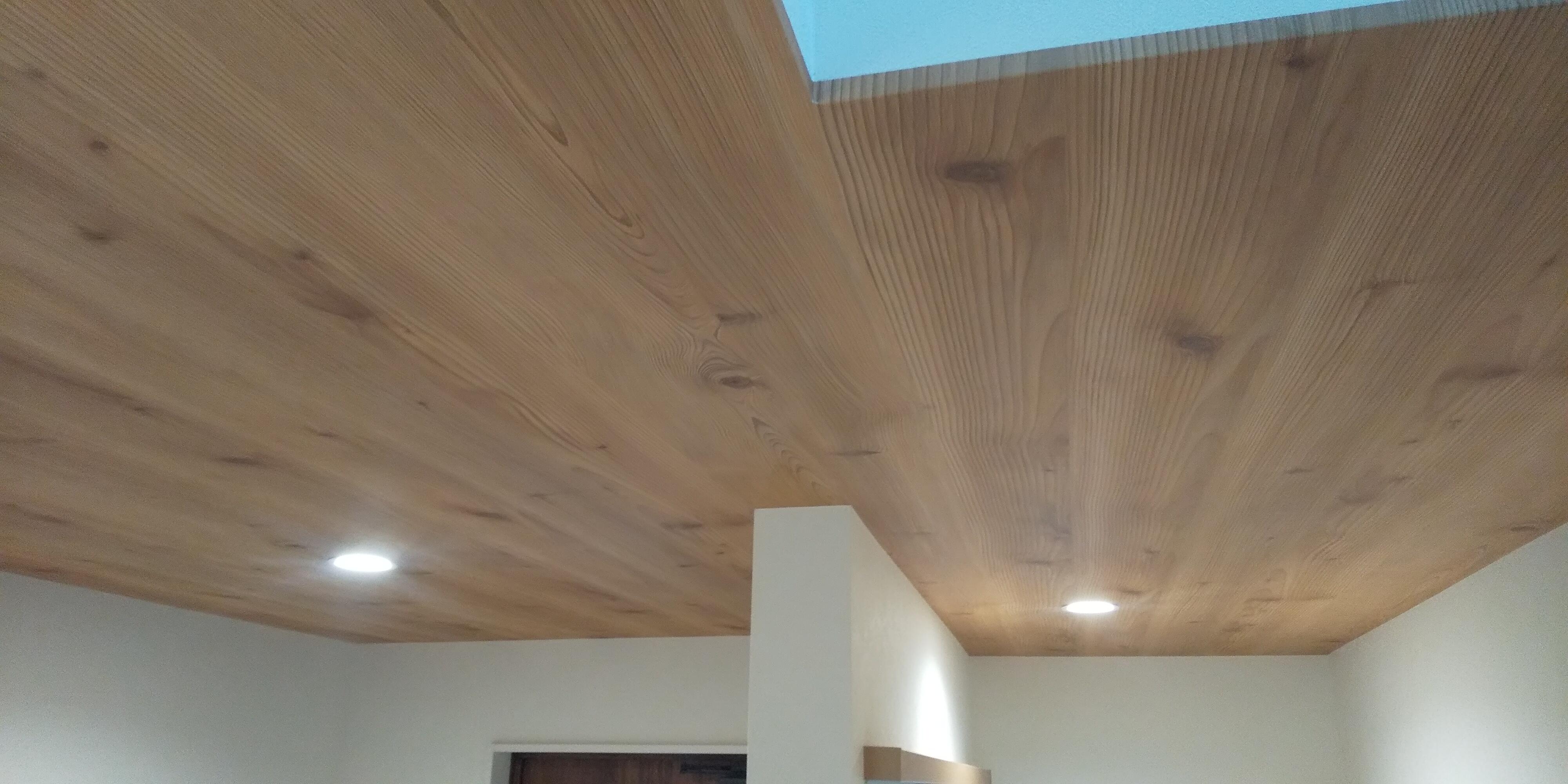 クロスでは出せない独特の質感と陰影がでて雰囲気が一変。また周辺の木質との相性もバッチリ。