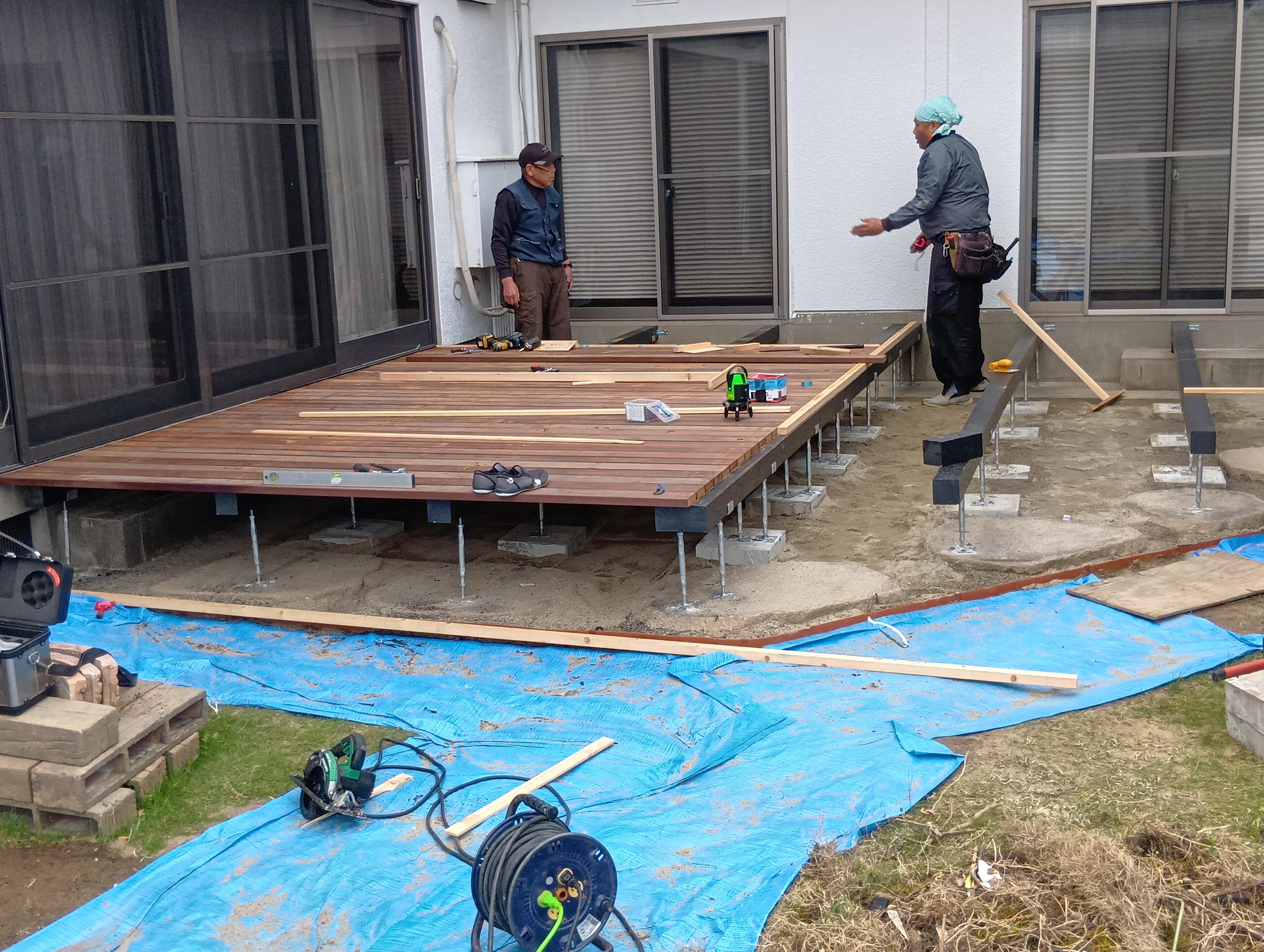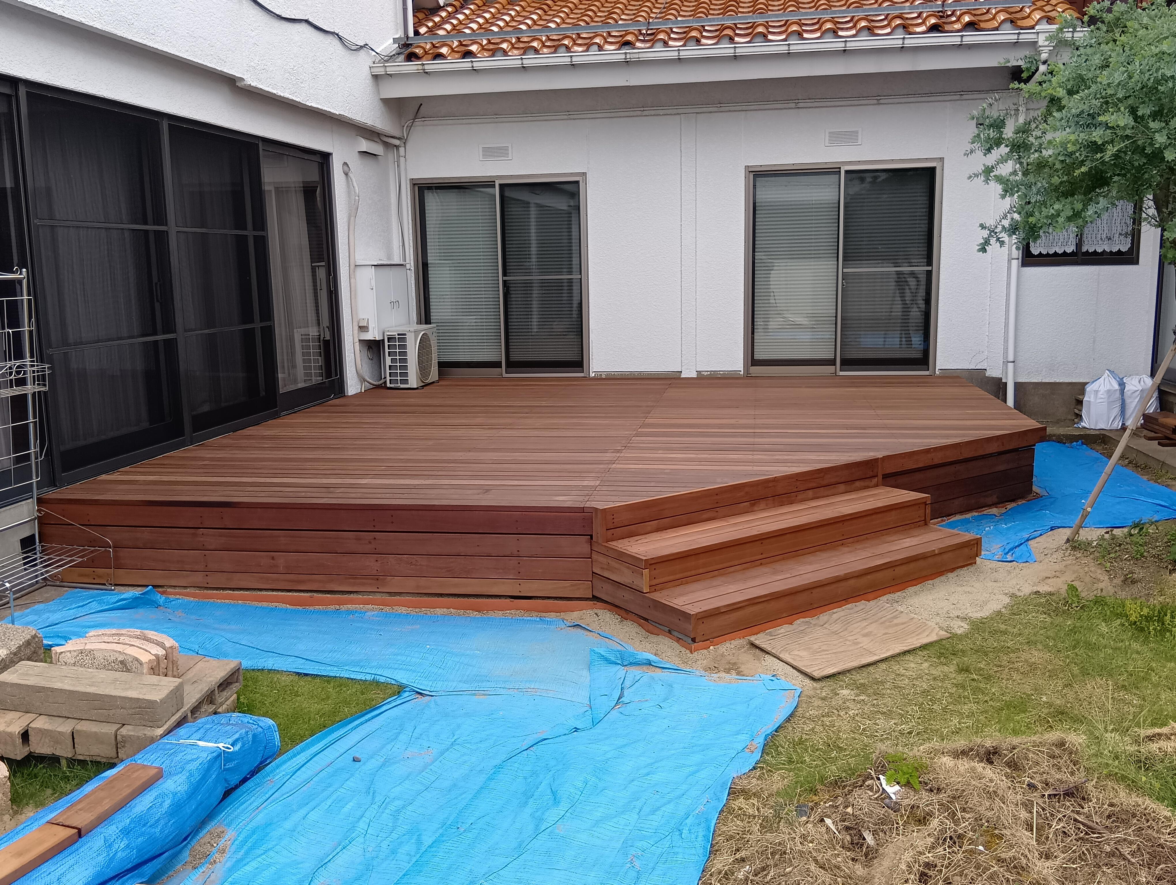 デッキ材は『ウリン材』を使用。比重が重く、そして腐りにくいので、耐久年数もそこそこの素材です。
