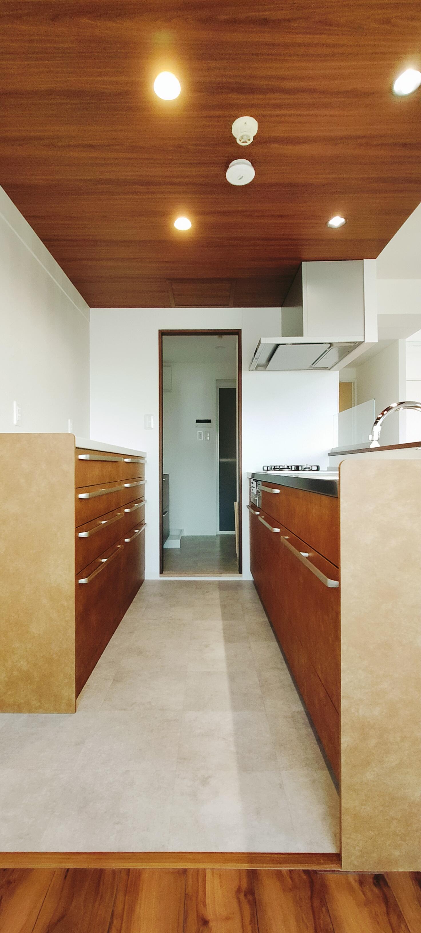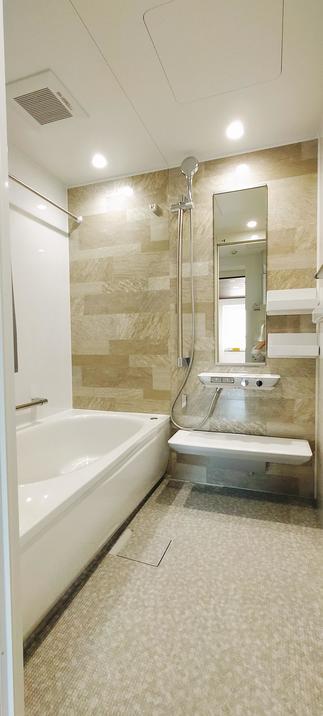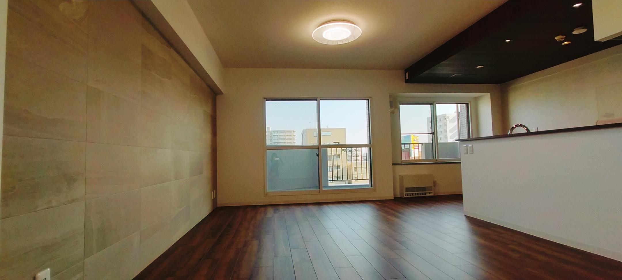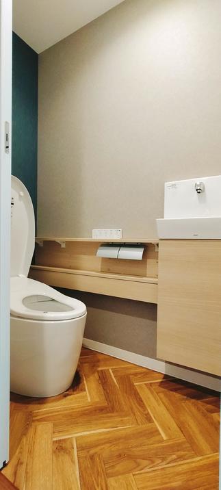 3LDKの間取りを広々ゆったり過ごせるリビングとウォークインクローゼットの1LDKにフルリフォームしました。 閉鎖的だったキッチンは対面式でフルオープン。 壁一面のエコカラットは湿気やにおいを吸収してくれる役目も。 トイレもタンクレスですっきり、ヘリンボーンのクッションフロアが素敵です。