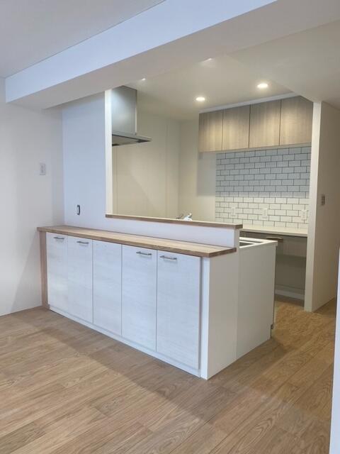 相続したマンションを娘さんの居住用にリフォームをと来店されリフォームさせて頂きました。 タイル貼りだったお風呂はスパージュでスタイリッシュに。 独立したキッチンはリシェル。背面にお気に入りのタイルを貼って料理も楽しくなりますね。 造作のカウンターも付けました。