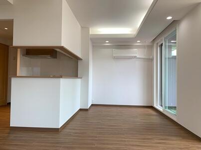 リビングの部分は床暖が入っていたので、床材はどれでもいいわけではありませんでした。お客様と検討した結果、上貼りで床暖にも対応できて工期も短く、廃材も少ないLIXILの新商材「リノバうわばReフロア」に決定。マンションは階下への騒音配慮でLL=45以下としているところがほとんどですが、元の床がLL=45であればOKだそうです。カラーは落ち着いたオーク色。 モルトオークリノバうわばReフロアはLIXILのキッチン「ノクト」や建具とカラーコーディネートも楽しめますよ。