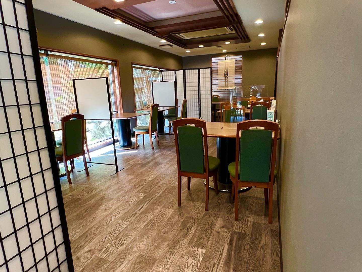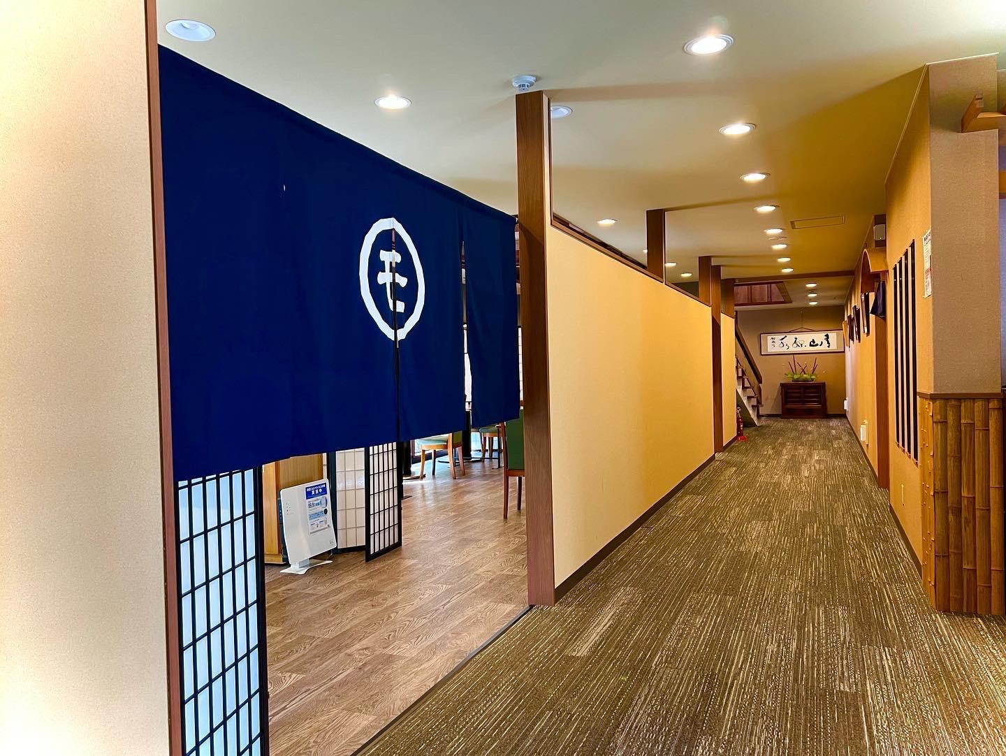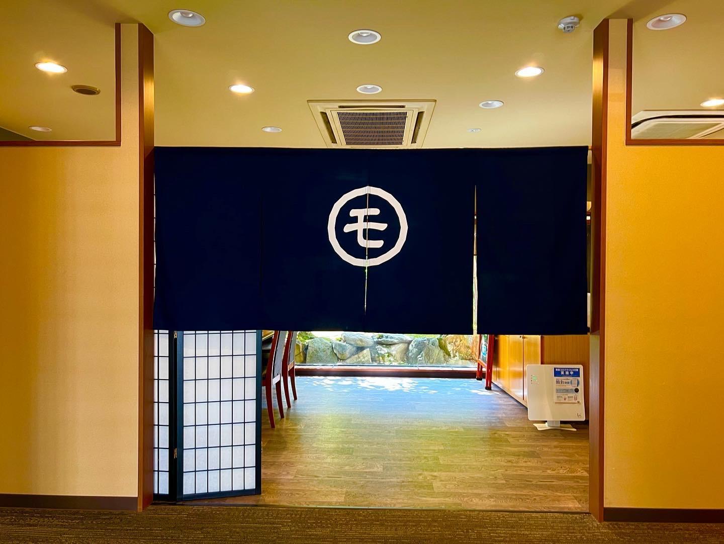 鳥取駅から徒歩5分。鳥取温泉街の中心にある源泉かけ流し天然温泉【温泉旅館 丸茂】様のレストランとエントランスを