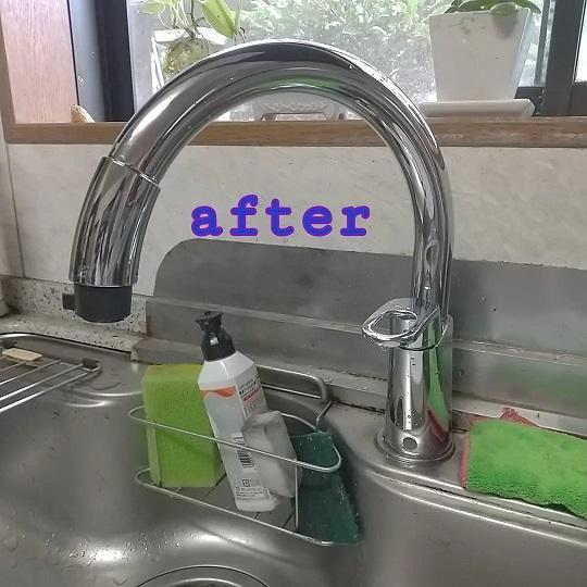 キッチンの蛇口から水がつたって、蛇口の根元が濡れてイヤなの…汚れてくるし… ということで、新しい水栓金具に交換させていただきました!