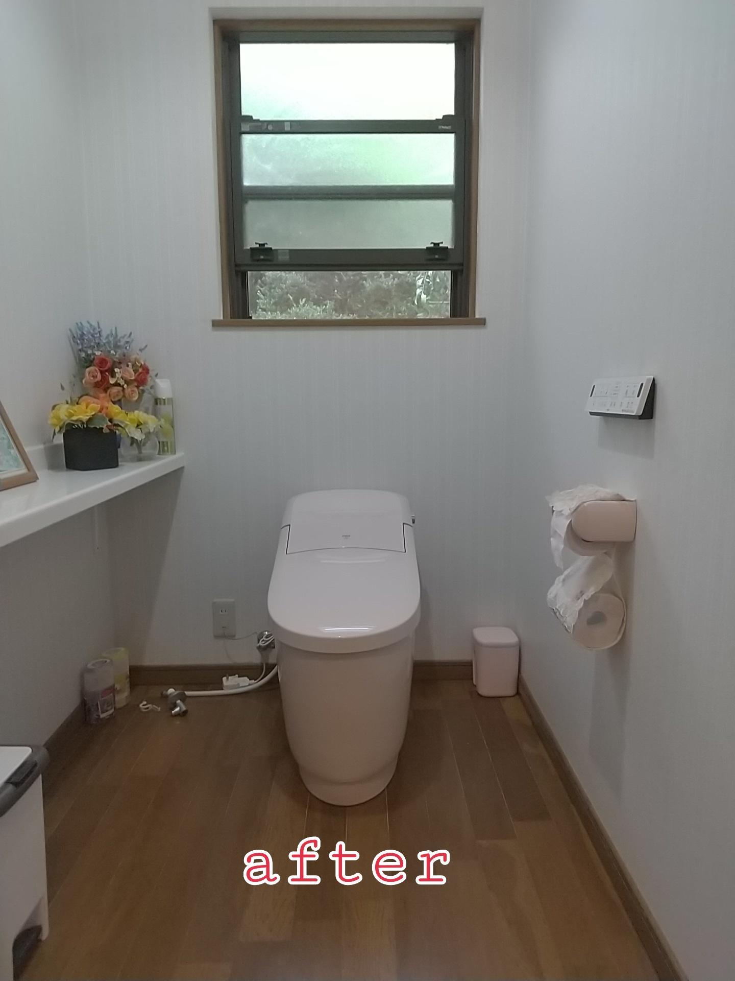 タンクレスではありませんが、タンクが小さいタイプのトイレに交換しました! 空間がスッキリしましたね♪ 便器にはフチがなく、お掃除がとってもラクです!