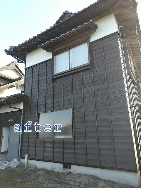 外壁の木部・破風板はもとの色を取り戻し、質感もカサカサしていたのがしっとりとした印象になりました!