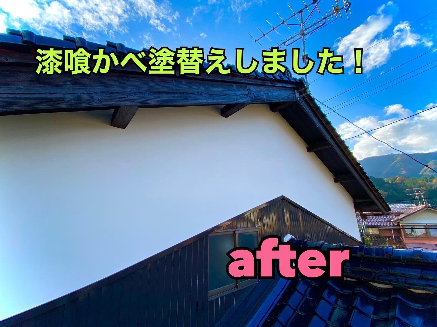 漆喰かべの塗替えをしてピカピカになりました☆ ひび割れ部分にはメッシュテープで補強をしてから塗替えました!