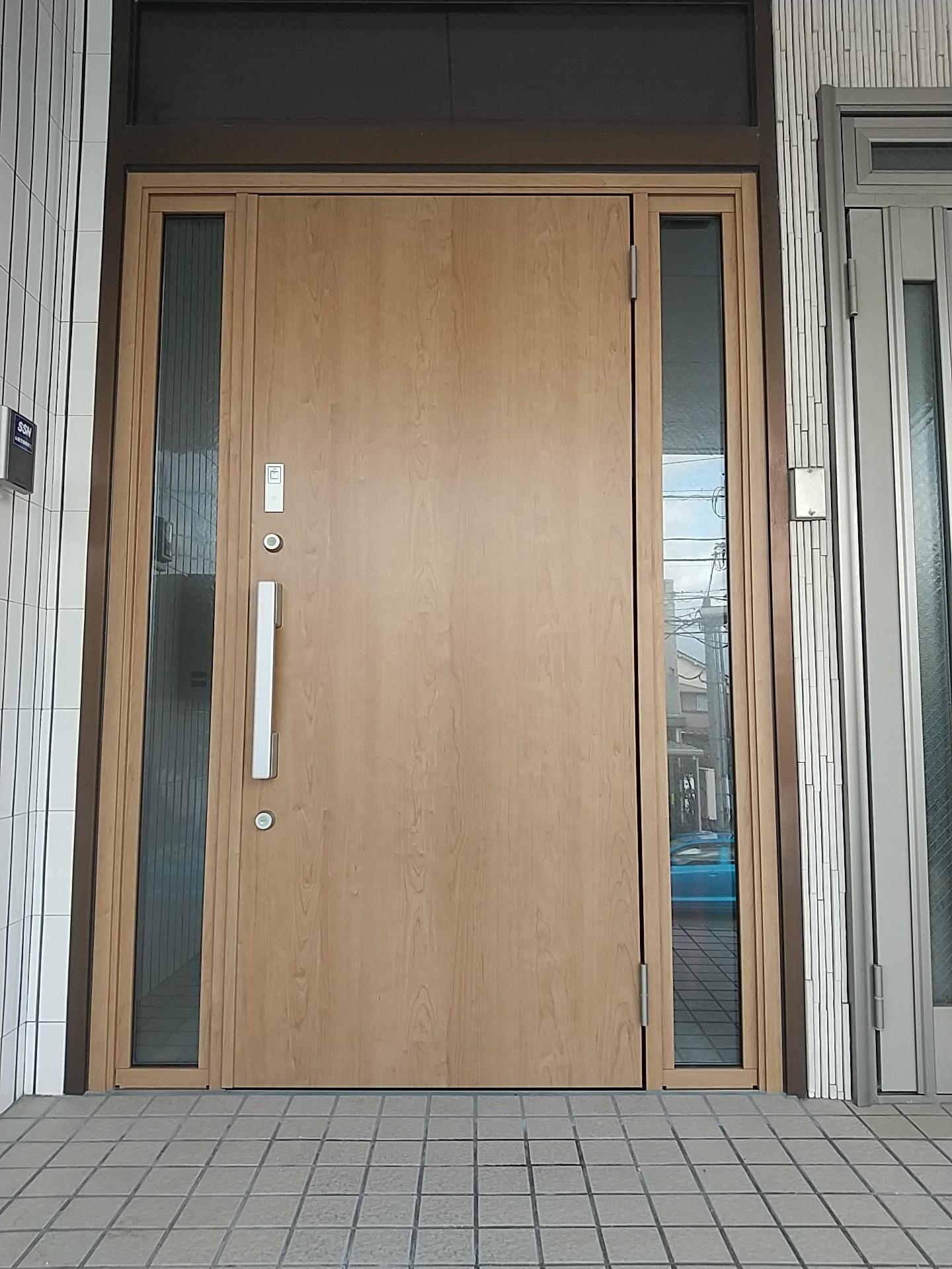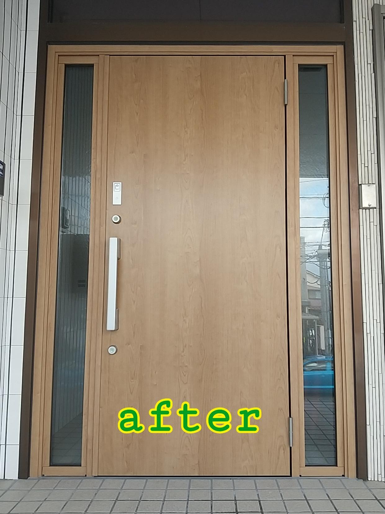 今まではガラスの両開きドアでしたが、中が見えにくいものにしたいとのお客様のご要望で、このようにガラッと違うドアに変えられました☆