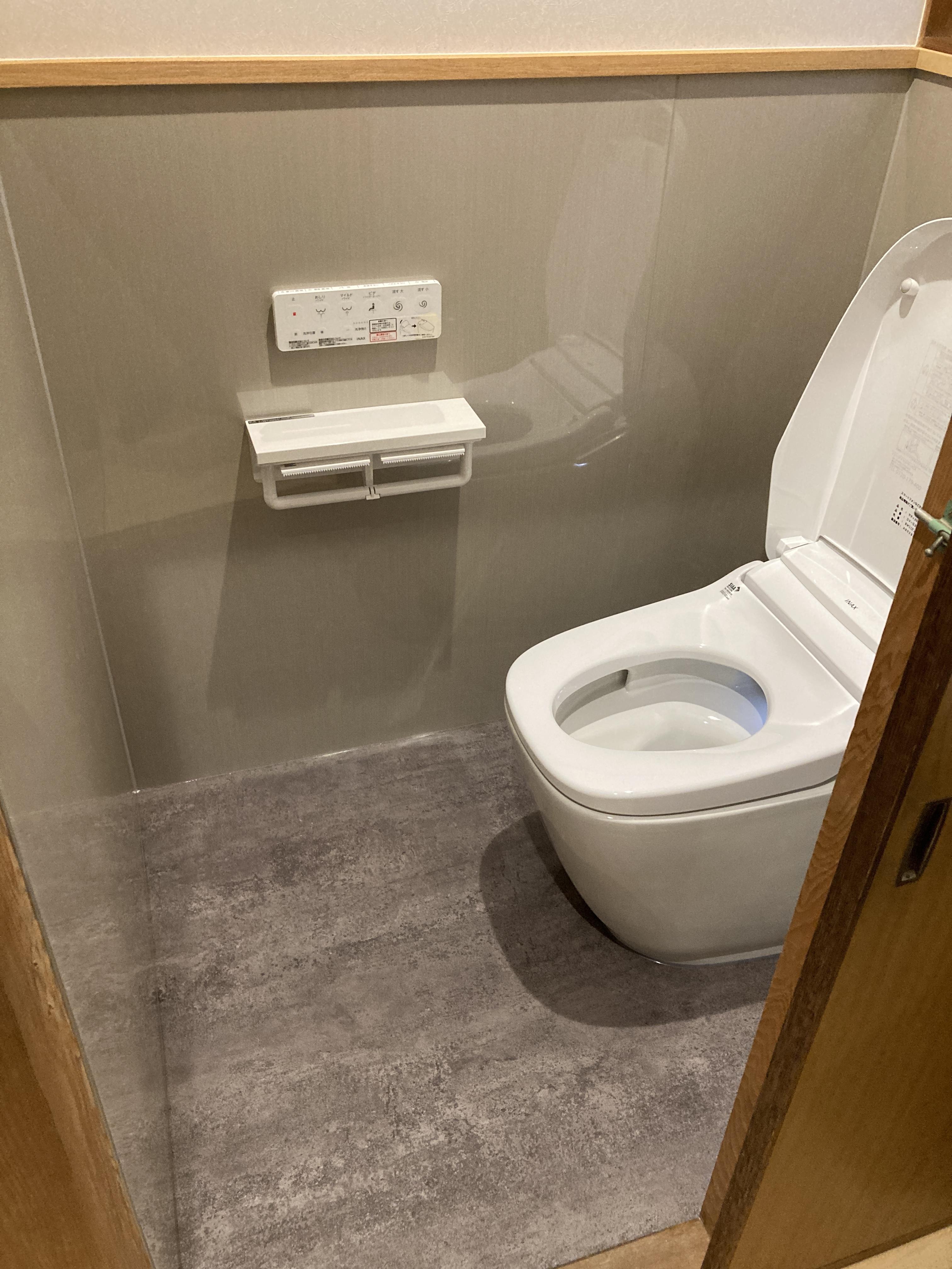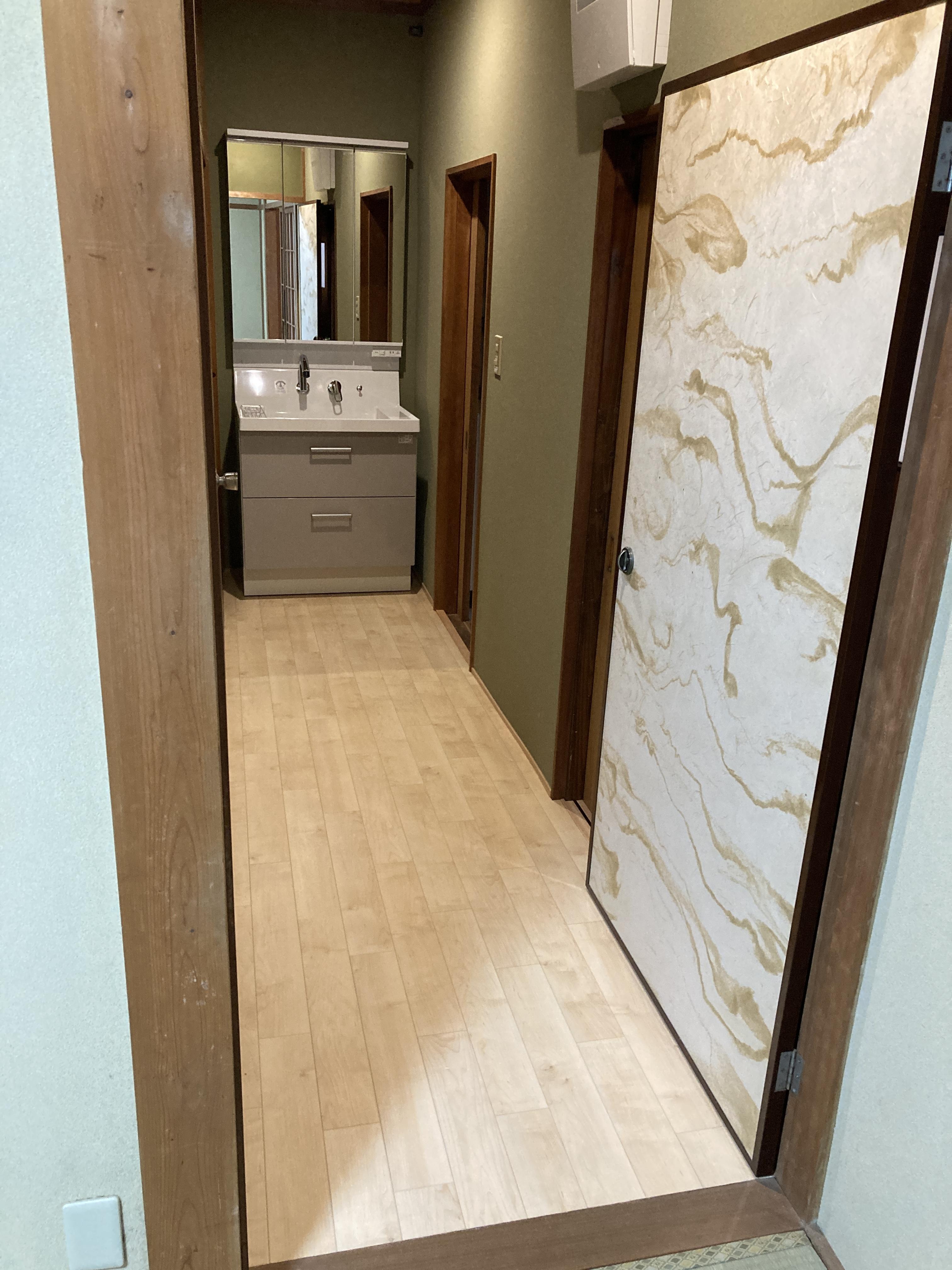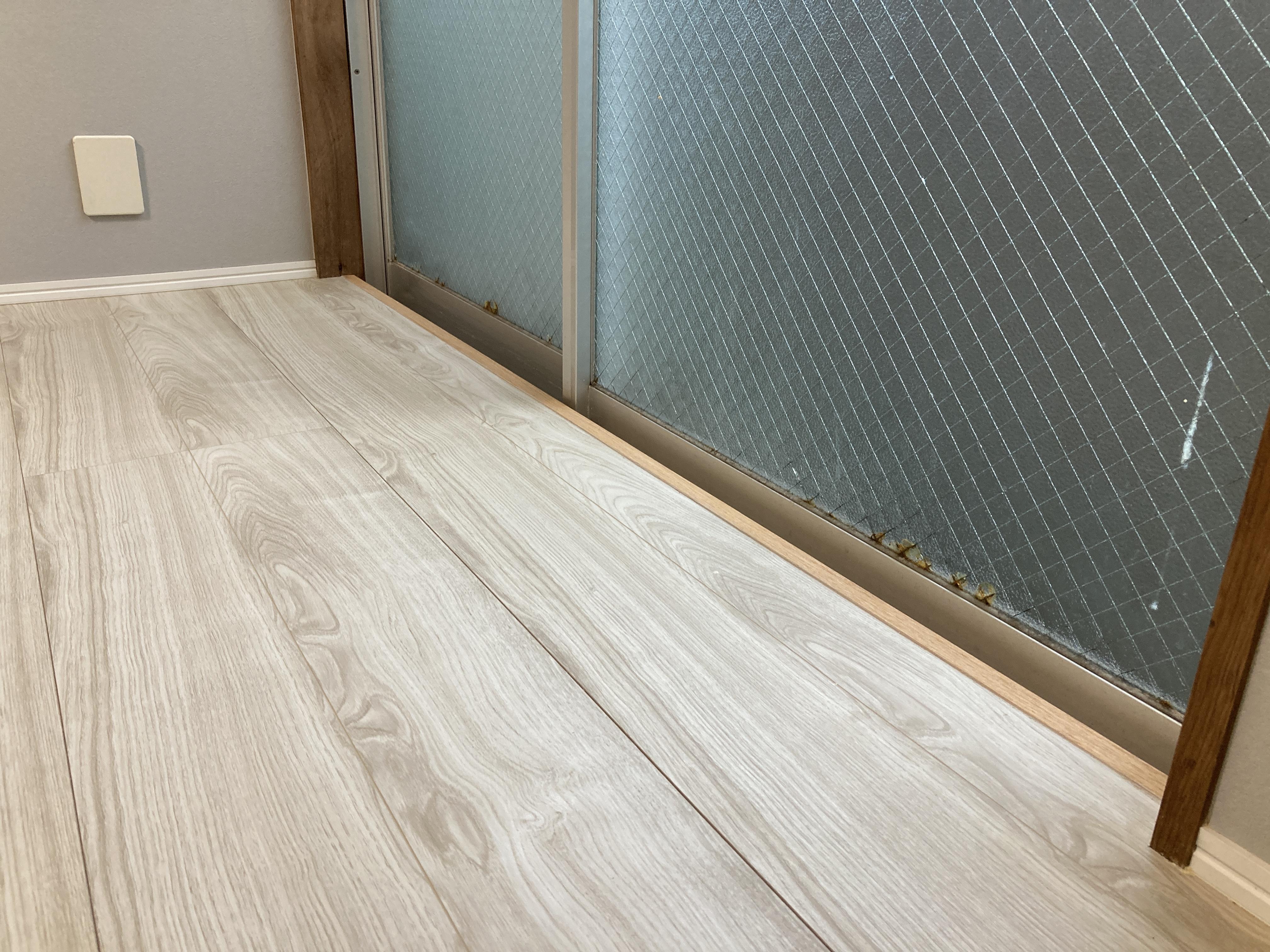 今あるフロアーの上に新たな床を組み、つまづきやすい段差をなくしました。 これでどの世代でも安心して暮らせます。 他にもクロスの貼り替え、エアコン新設、便器の交換、 トイレの腰壁部分に掃除がしやすいパネルを貼り、 新しくて快適な空間ができました。