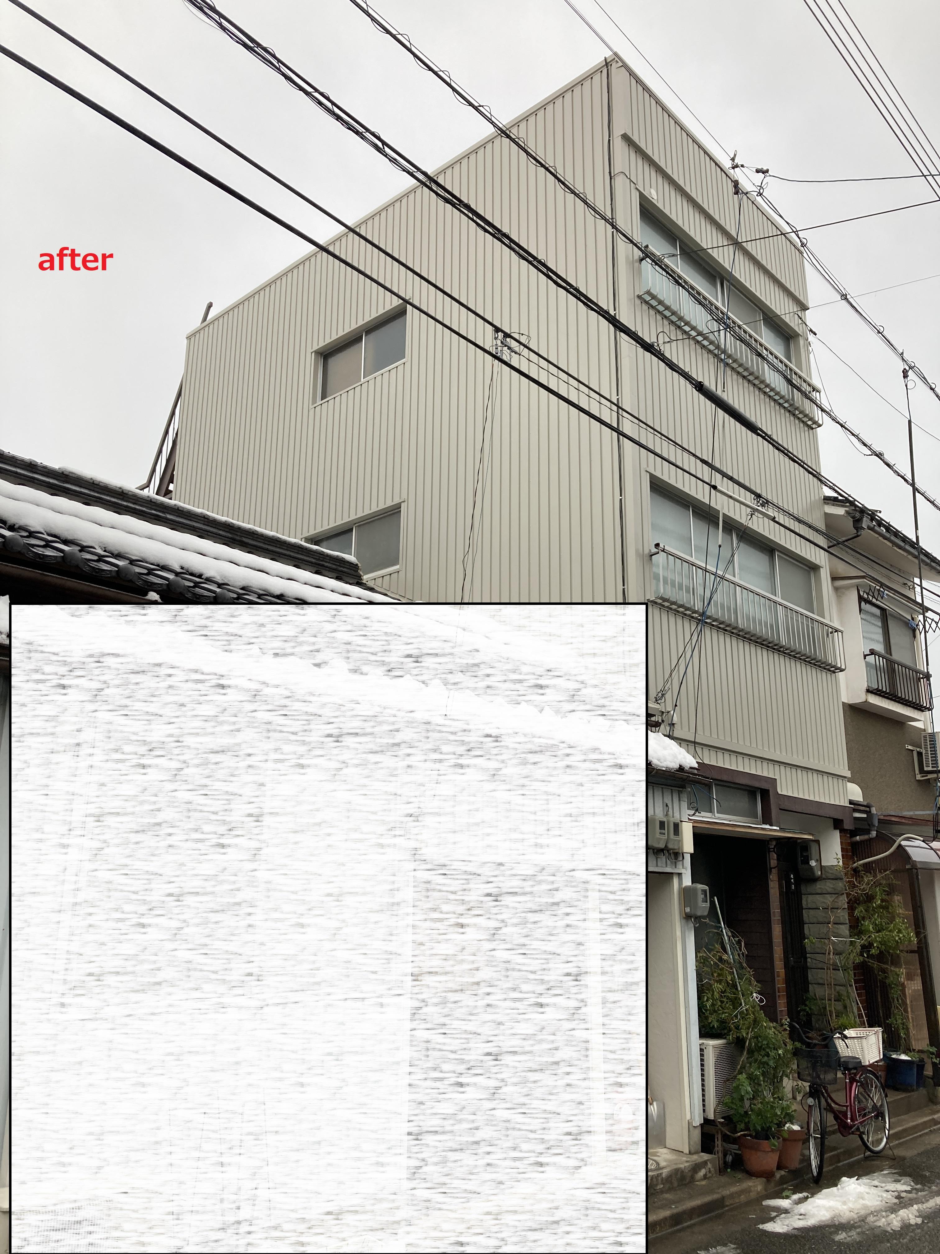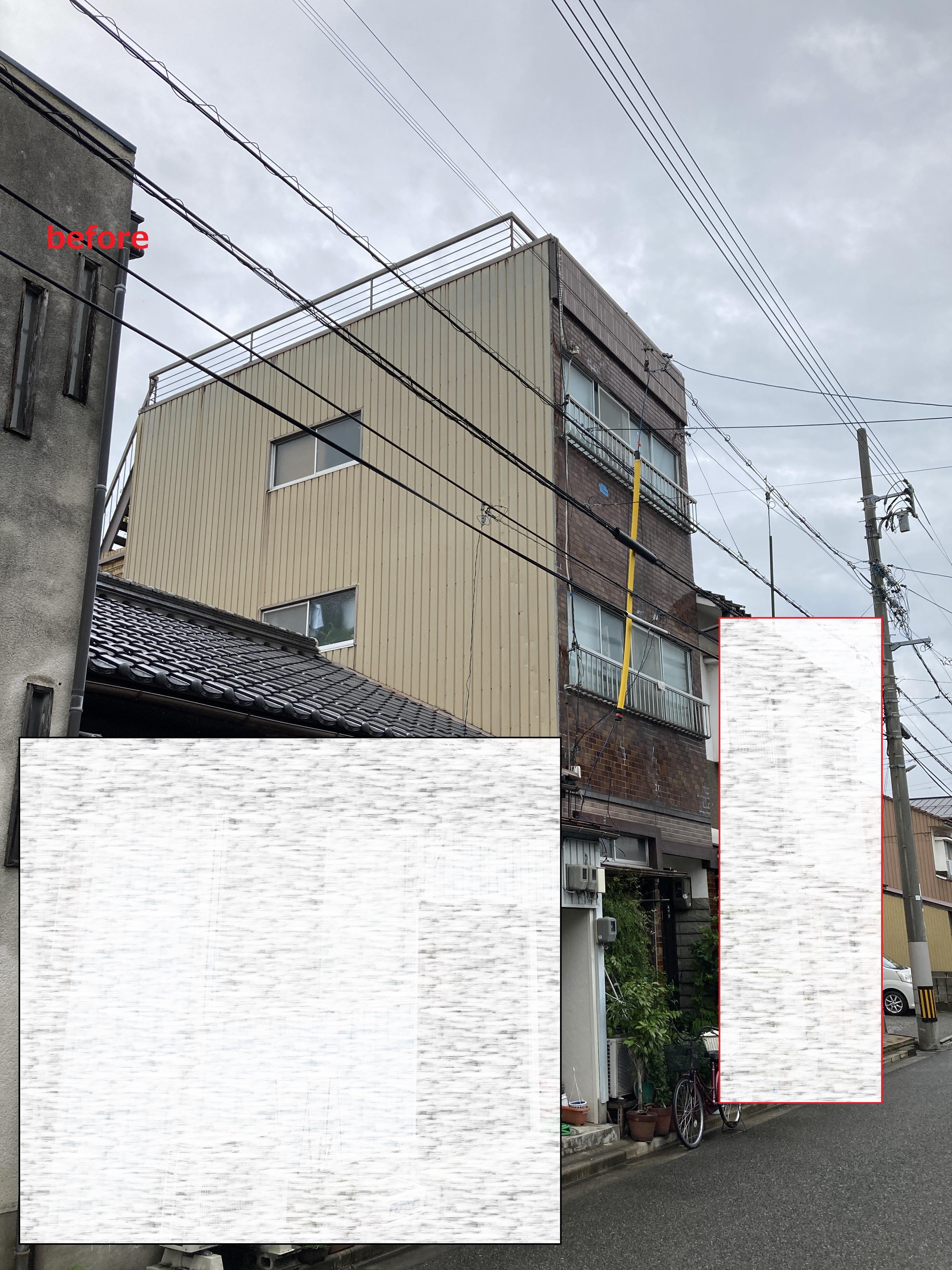 2022年春の大風にて既存の外壁がめくれかかったことが きっかけで、家族の将来の事も考え、外壁の板金カバー工法 陸屋根のシート防水、屋上の手摺撤去等、 外部を中心に改装工事を行いました。 これで大風が吹いても、大雨が降っても心配はありません。 ご家族も安心して生活ができますね。
