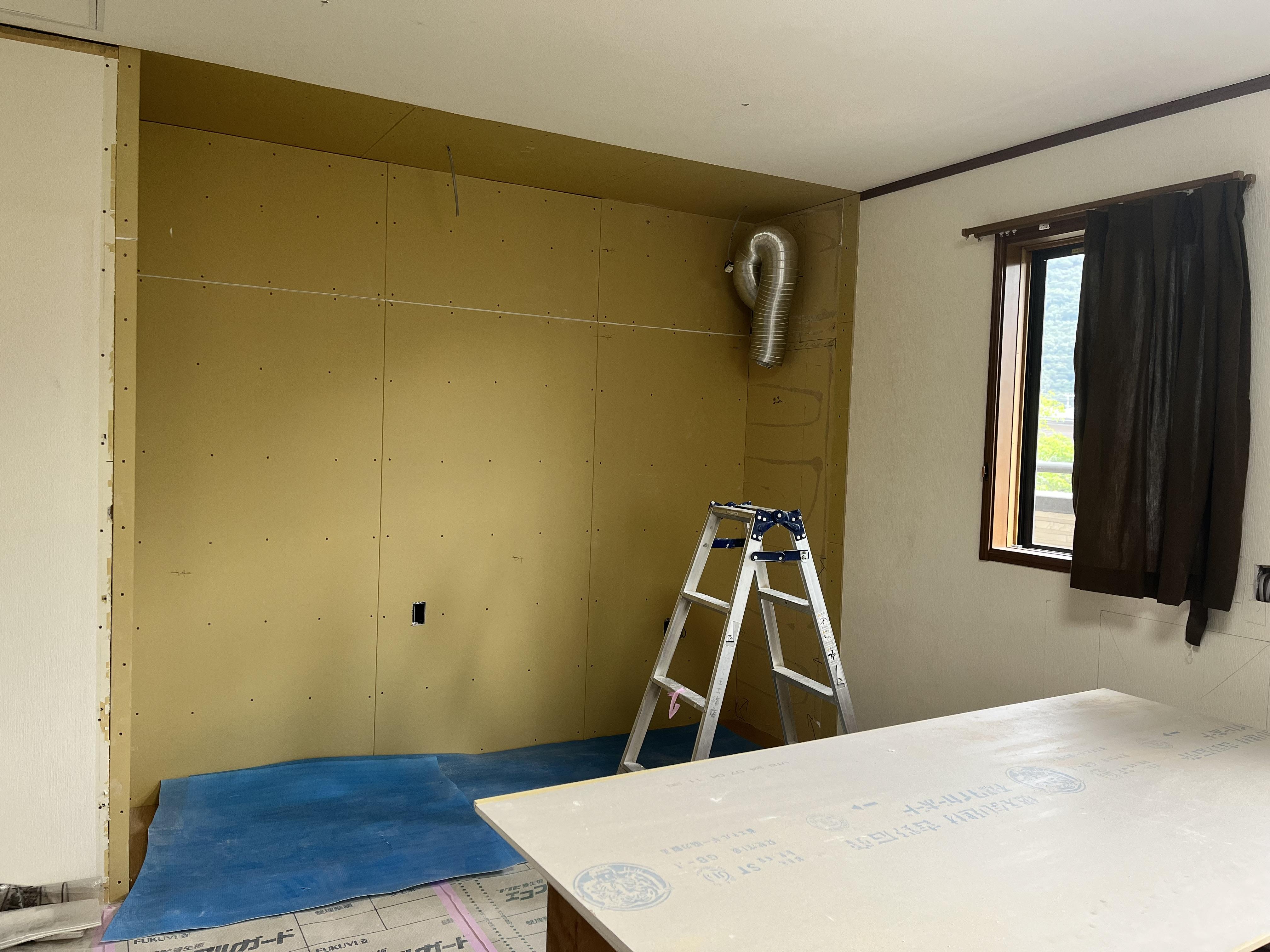 元々ウォークインクローゼットとして利用していた場所だったので、配管・ダウンライト・コンセント等の新設工事も行いました!