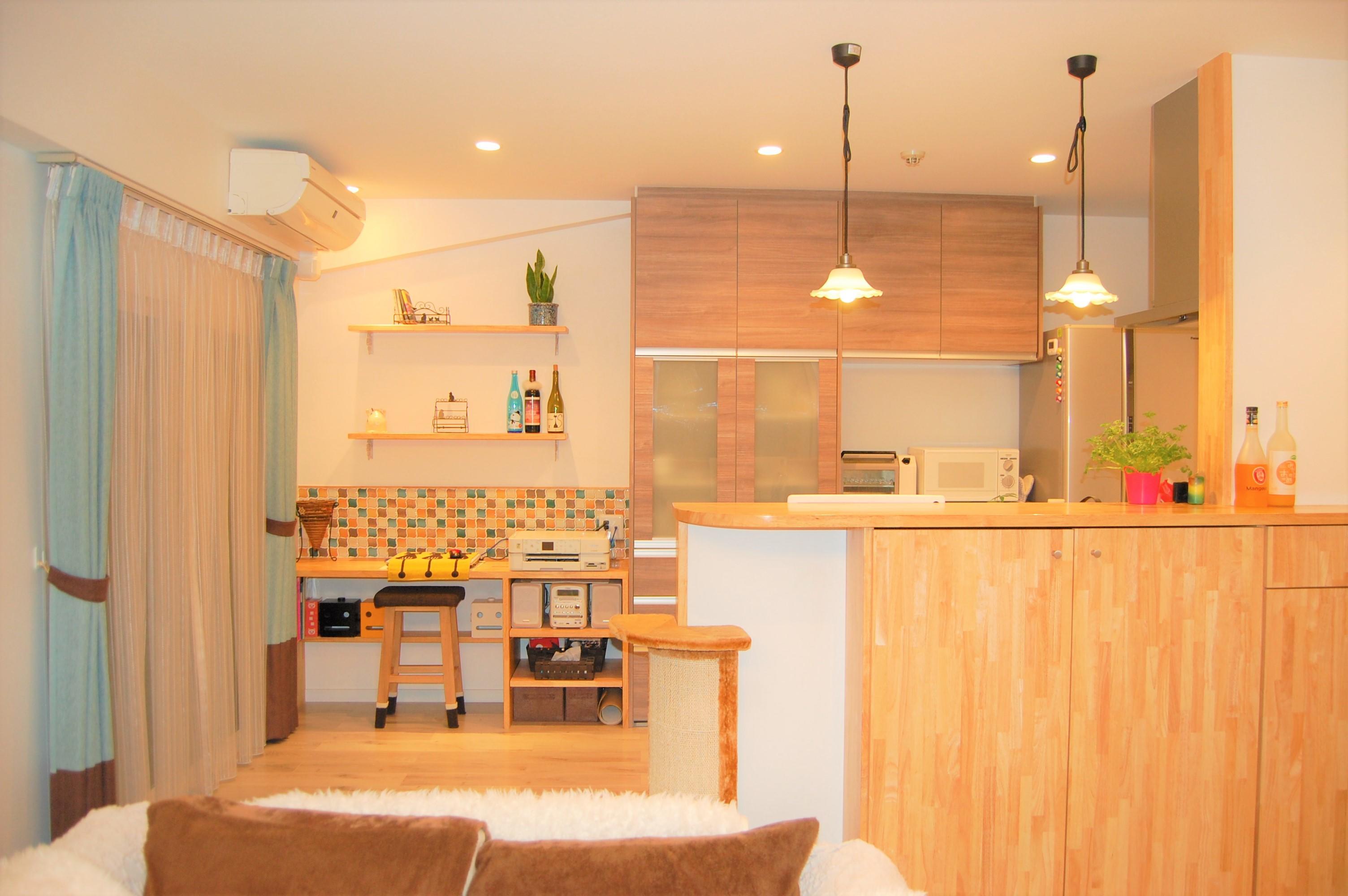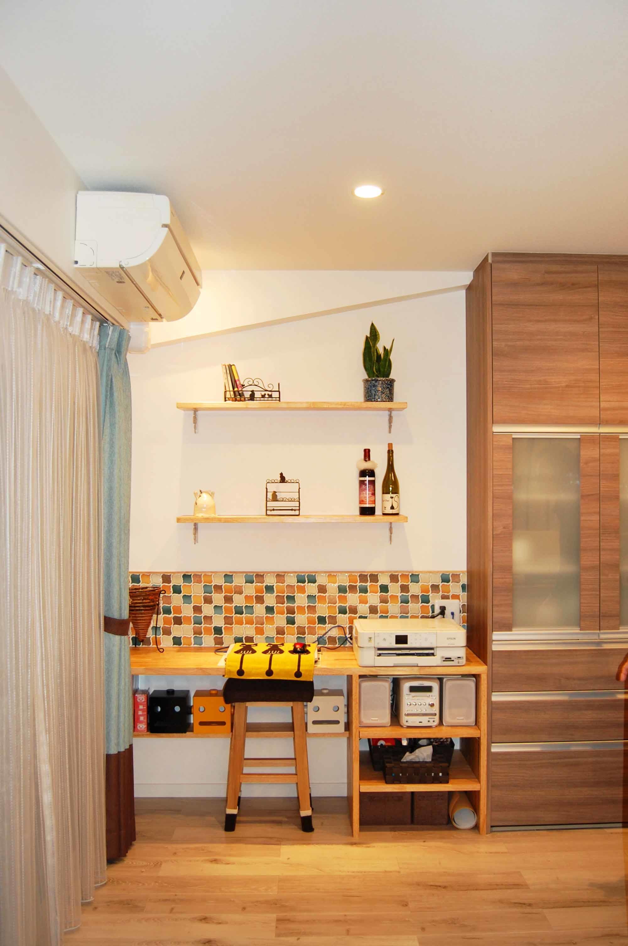 今までにあった和室をなくし、タイルや天然の木材などをふんだんに使ったカフェ風の開放的な住まいを計画。