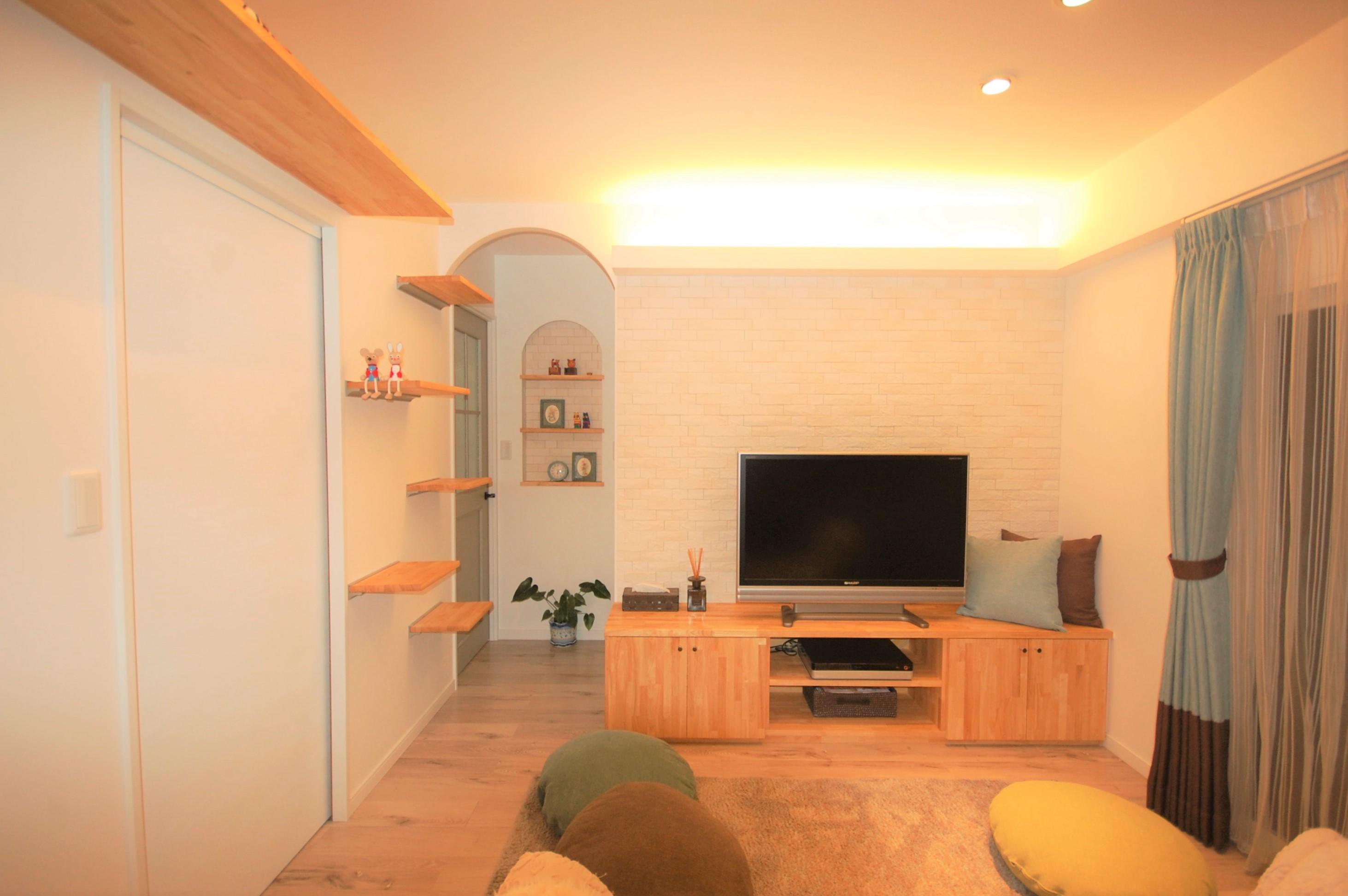 「家族全員が集まったときにわくわくするような空間にしたい」と思い描かれていたお施主様。 間取りから、性能面、デザイン面などこだわりの詰まったマンション全面リフォームをさせていただきました。 ねこちゃん専用のドアやキャットウォークをつくり、ご家族様全員が楽しく過ごせる空間となりました。