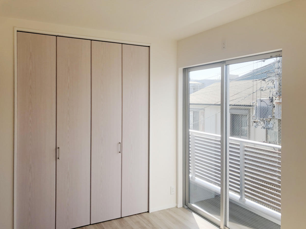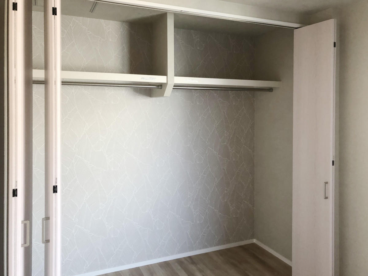 クローゼットの中にはアクセントクロスを。扉を開けるたび、収納するたびに、楽しい気分になります。