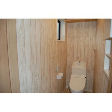 壁紙を縦木目にすることで、天井が高く感じられるようになりました。また、トイレには溝が少ない一体型のものをご提案し、日々のお手入れもぐっと時短する事ができました。