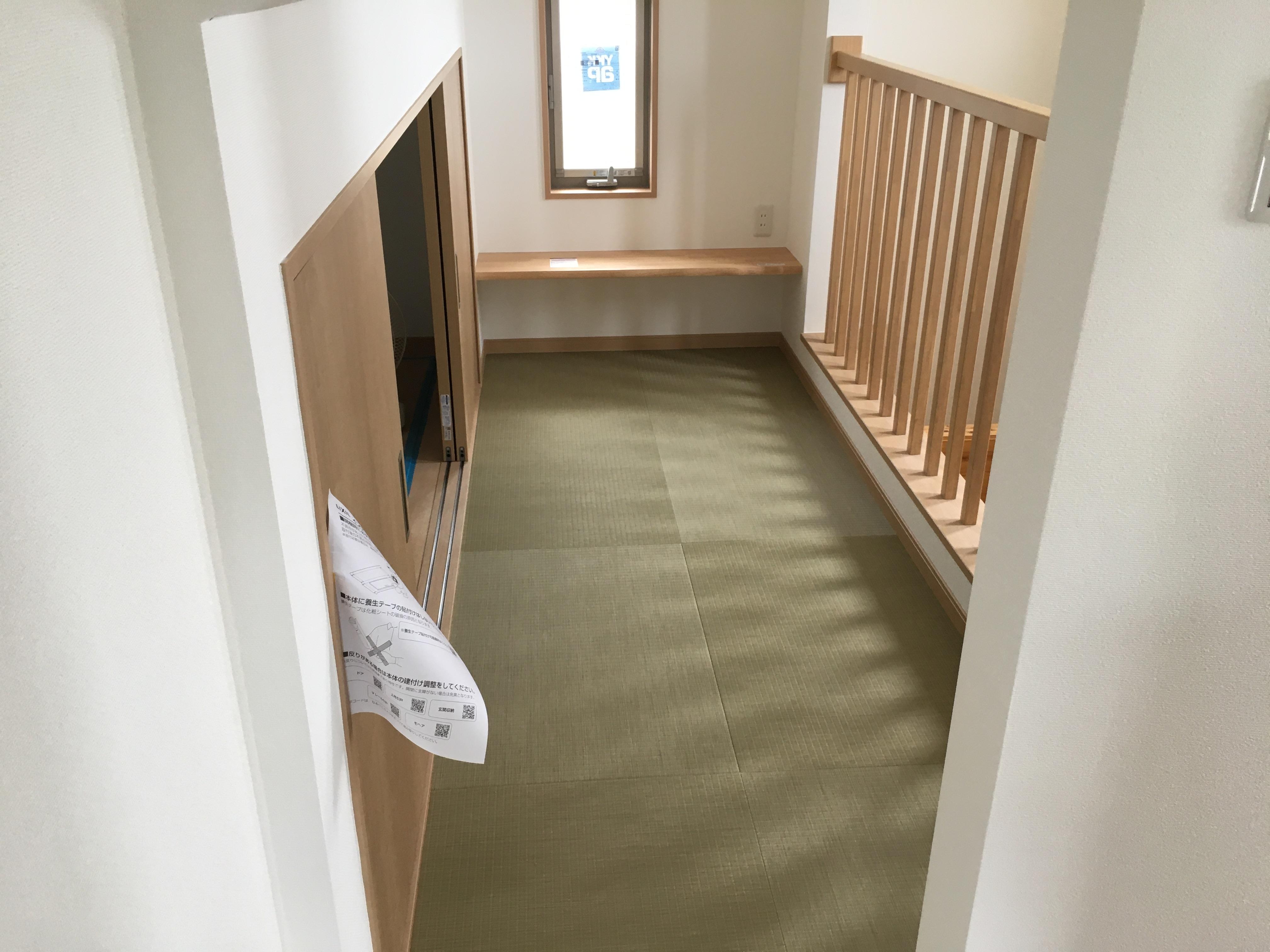 吹き抜け梁上にあった収納スペースに間仕切り壁を 増築し扉も設置しました。 増築部分に畳を追加し、リラックススペースを設けました。奥に窓も設置し明るくなりました。 吹き抜け側には手すりを新設してます。