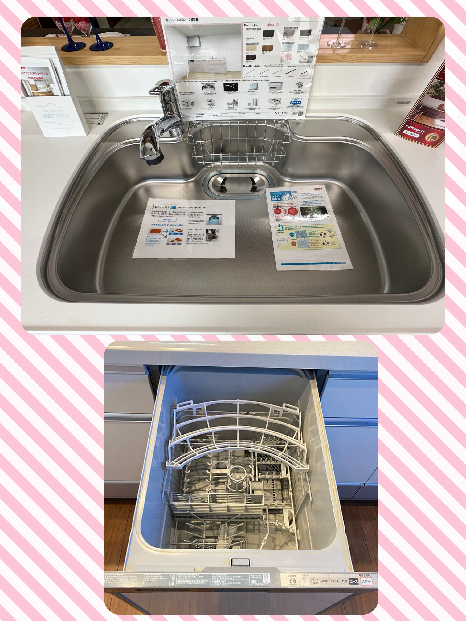 そして今回はスタッフからの熱い要望で食器洗い乾燥機も付属いたしました!!手洗いよりも衛生的で、節水もできて、時間に「ゆとり」が生まれます。水切りかごも置かなくてよいので、キッチン周りもすっきし見えますし、手洗いによる手荒れでお困りの方は手荒れの予防にも効果的です♪