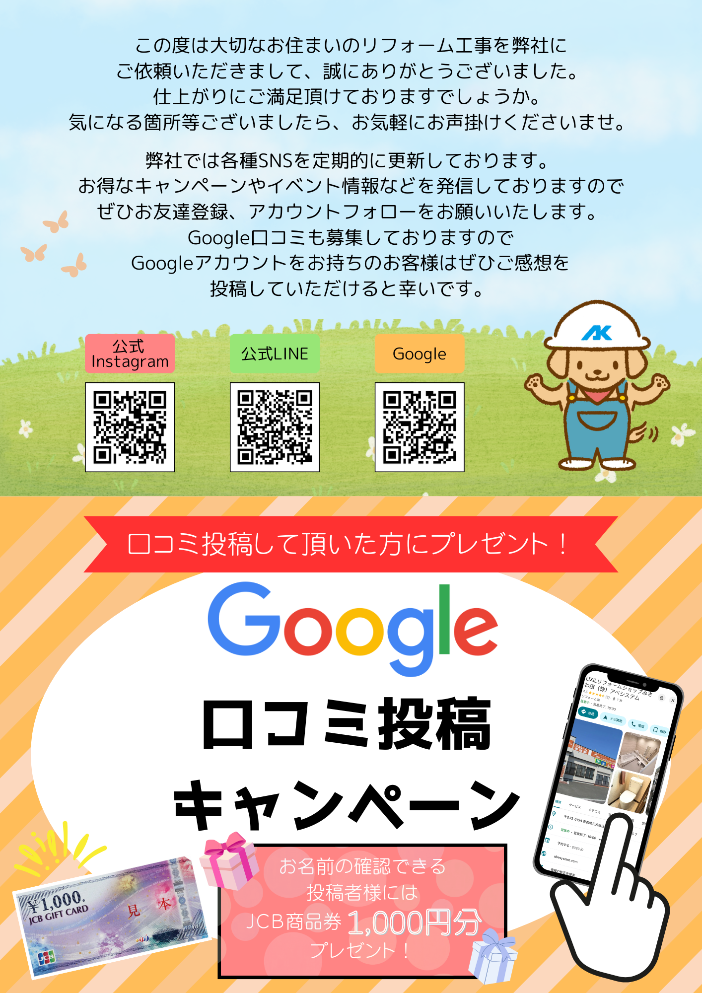 ぜひ、この機会に口コミ投稿をよろしくお願いいたします。