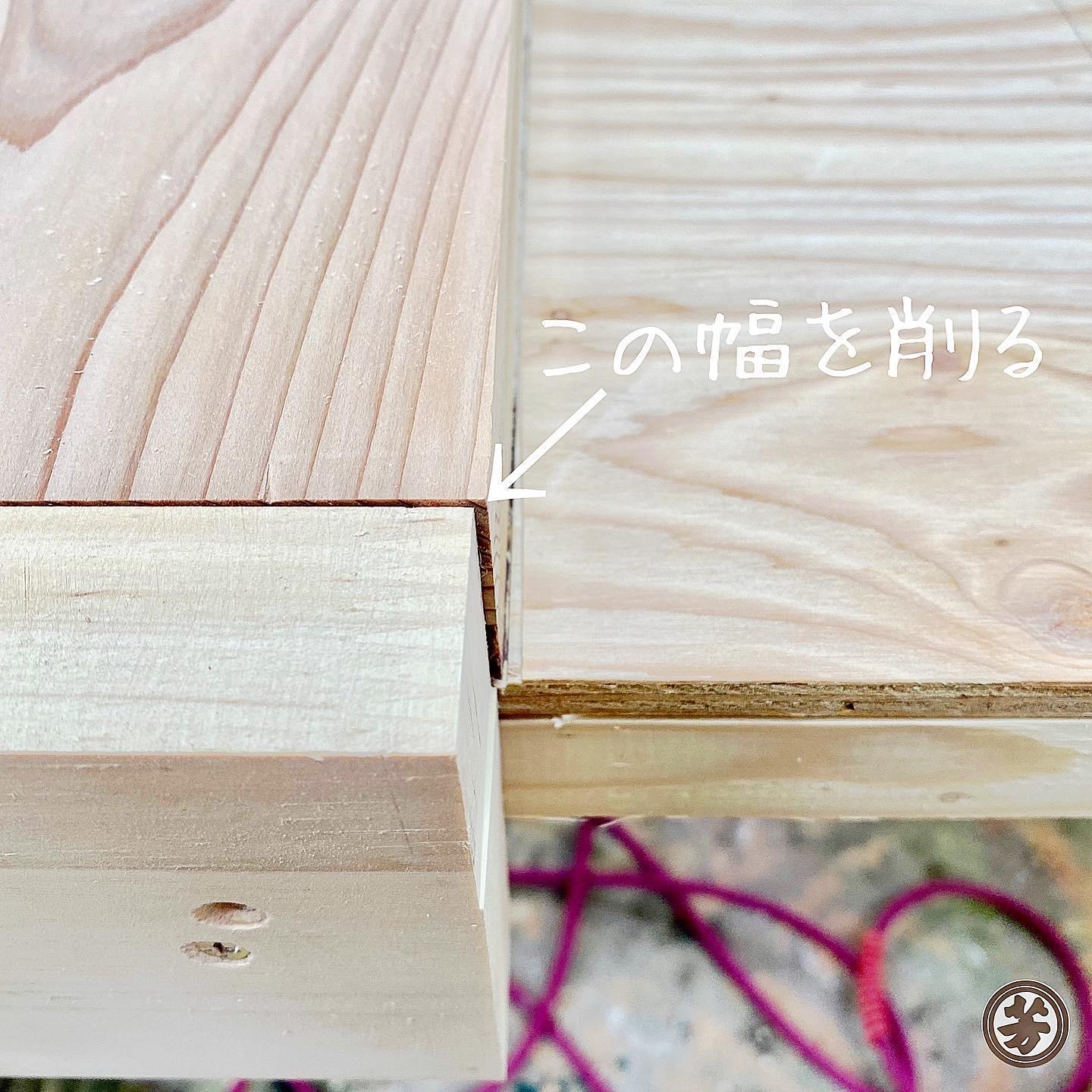 長方形の板を切ると、ノコギリ厚みの分誤差が出ます。