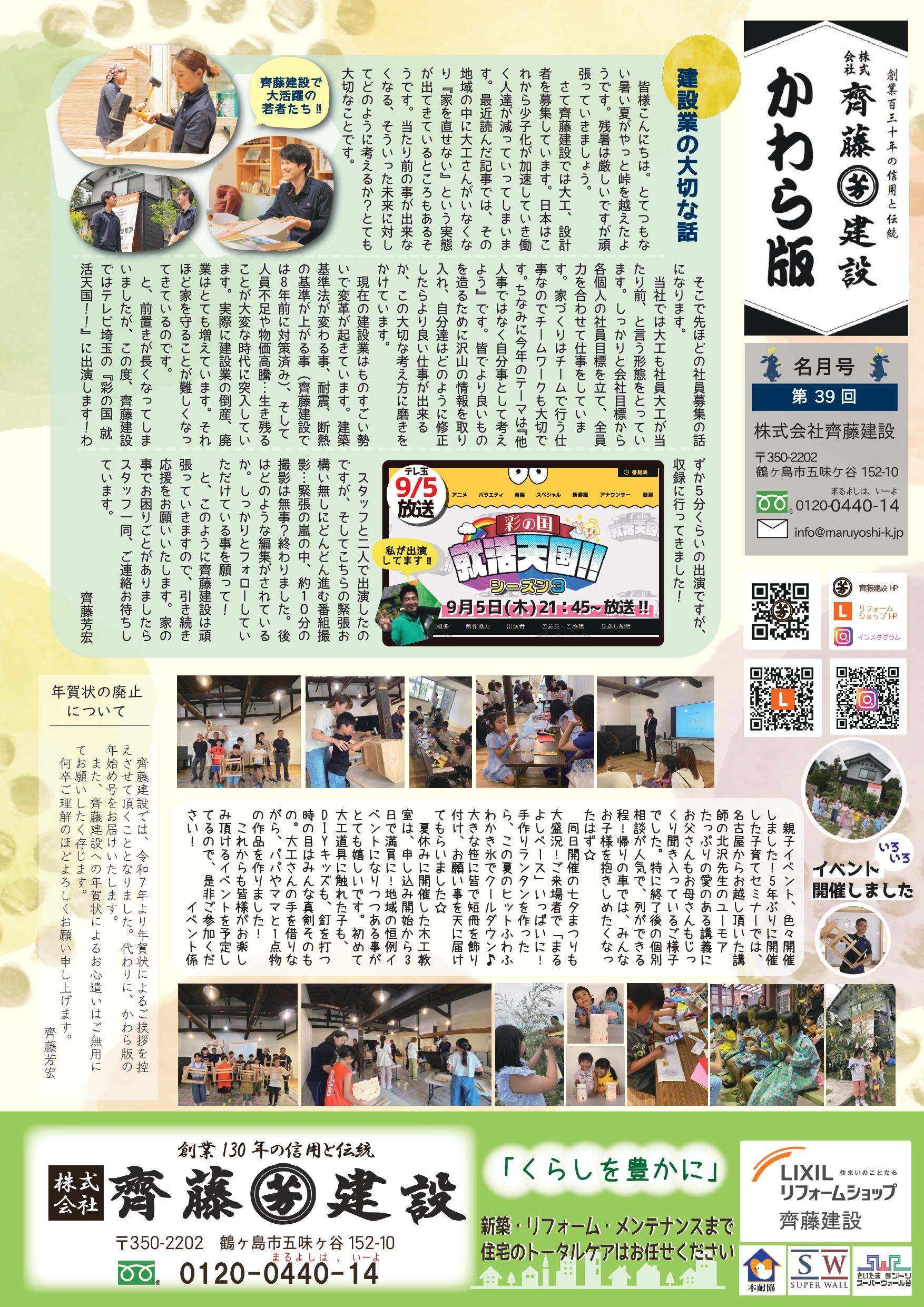 齊藤建設が発行している『かわら版』