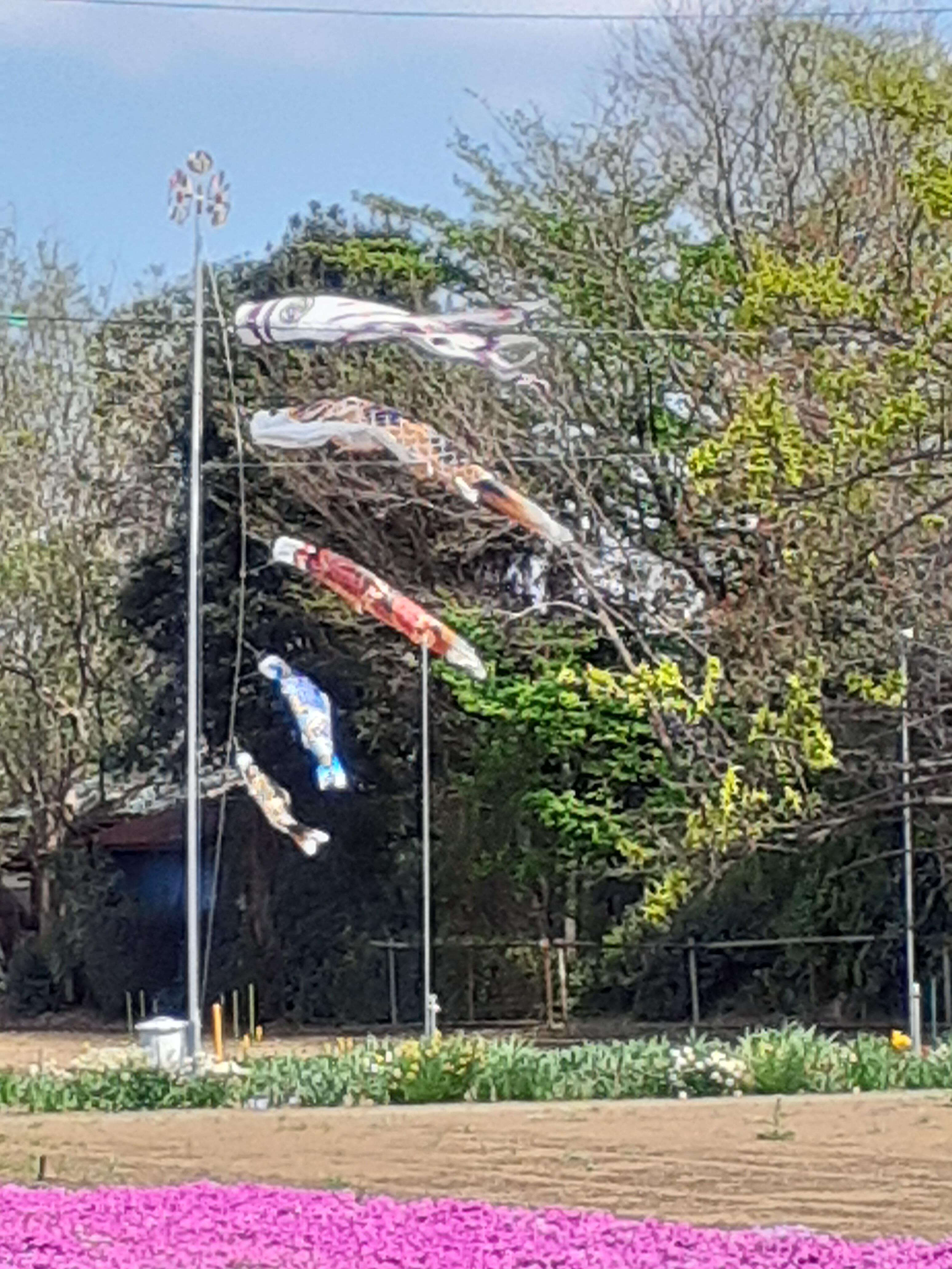 春の強い風に泳ぐ立派な鯉のぼりも