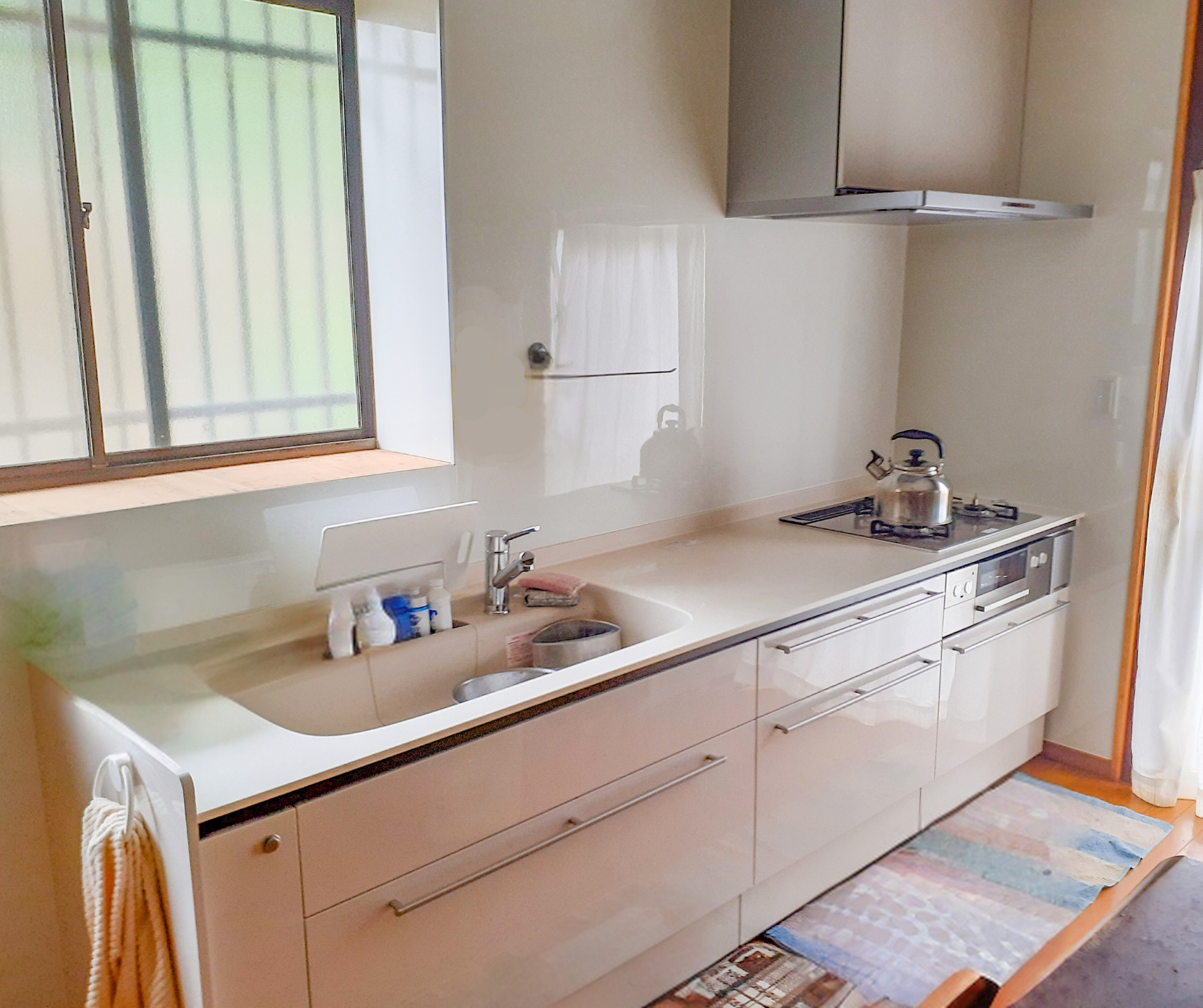 大きなリフォームは初めてだったので、右も左も分からず店長さんに相談しました。 古いお家なのでやって貰えるか心配でしたが、大体のおうちは直せますと心強いお話をしてくれました。 まずは最近のキッチンはどんなものがあるのか知りたいと相談すると、何名かでショールームに行くというツアーに参加させて頂きました。 どれもキレイで素敵でしたが、換気扇のお手入れがしやすいものを選びました。 システムキッチンを入れ替えるだけではなく、壁紙や窓周りも変えたので、新築のようにキレイになって感激しています。 大変お世話になりました。 キッチンがきれいになったら他も気になるようになったので、またお願いしたいと思います。