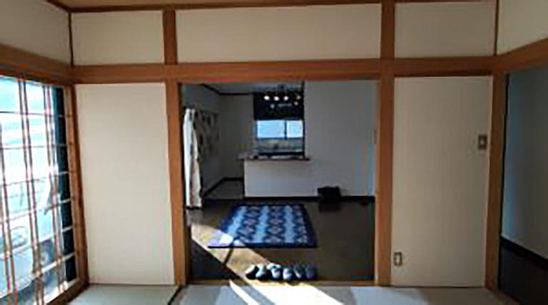 改修工事の内容は下記の通りです。1. キッチンの改修工事古かったキッチンを取り外し、新しいキッチンを設置しました。キッチンの壁面にはキッチンパネルを張り、美しく仕上げました。キッチン周りにはスペースを確保し、調理のしやすいスペースを作りました。2. リビング収納の設置リビング収納を設置し、ダイニングとの間仕切りとしました。デザインにもこだわり、キッチンと調和するように仕上げました。以上のように、キッチンの改修工事により、古かった和室をプチリノベーションし、広々としたLDKに生まれ変わりました。