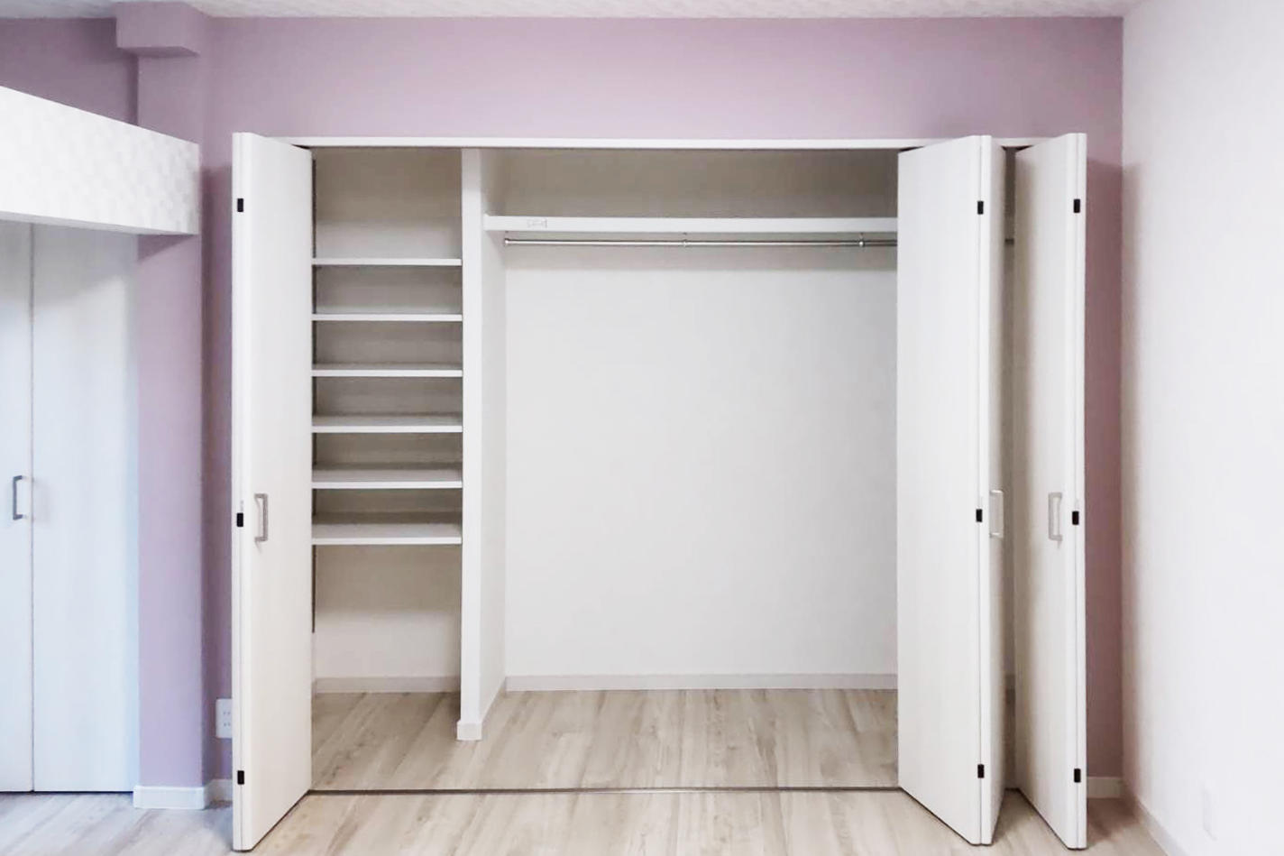 和室から洋室へ改修工事をさせていただきました。 今回は収納部分です。 床の間と押し入れをクローゼットに変更しました。 イメージがガラッと変わりますね。
