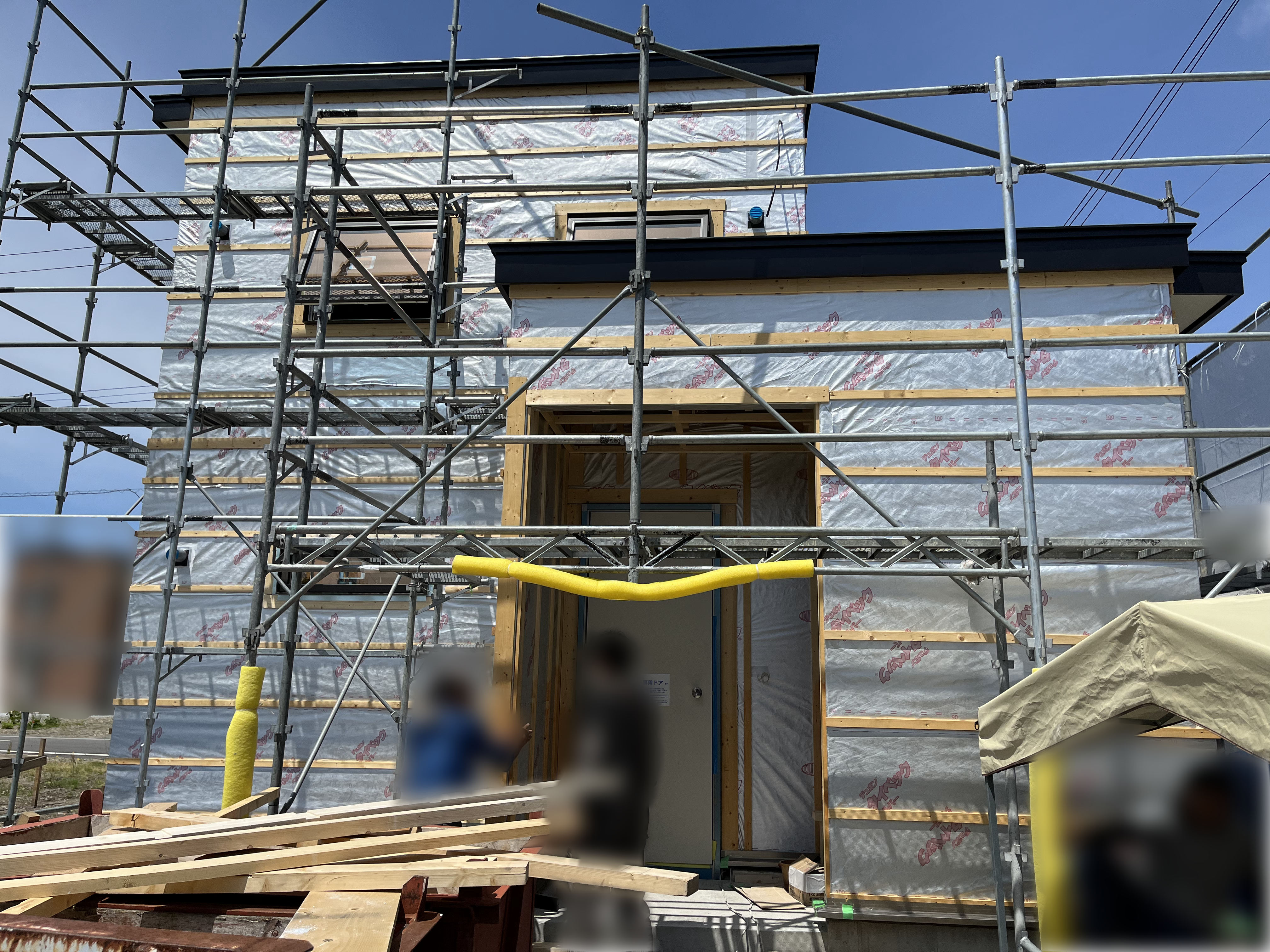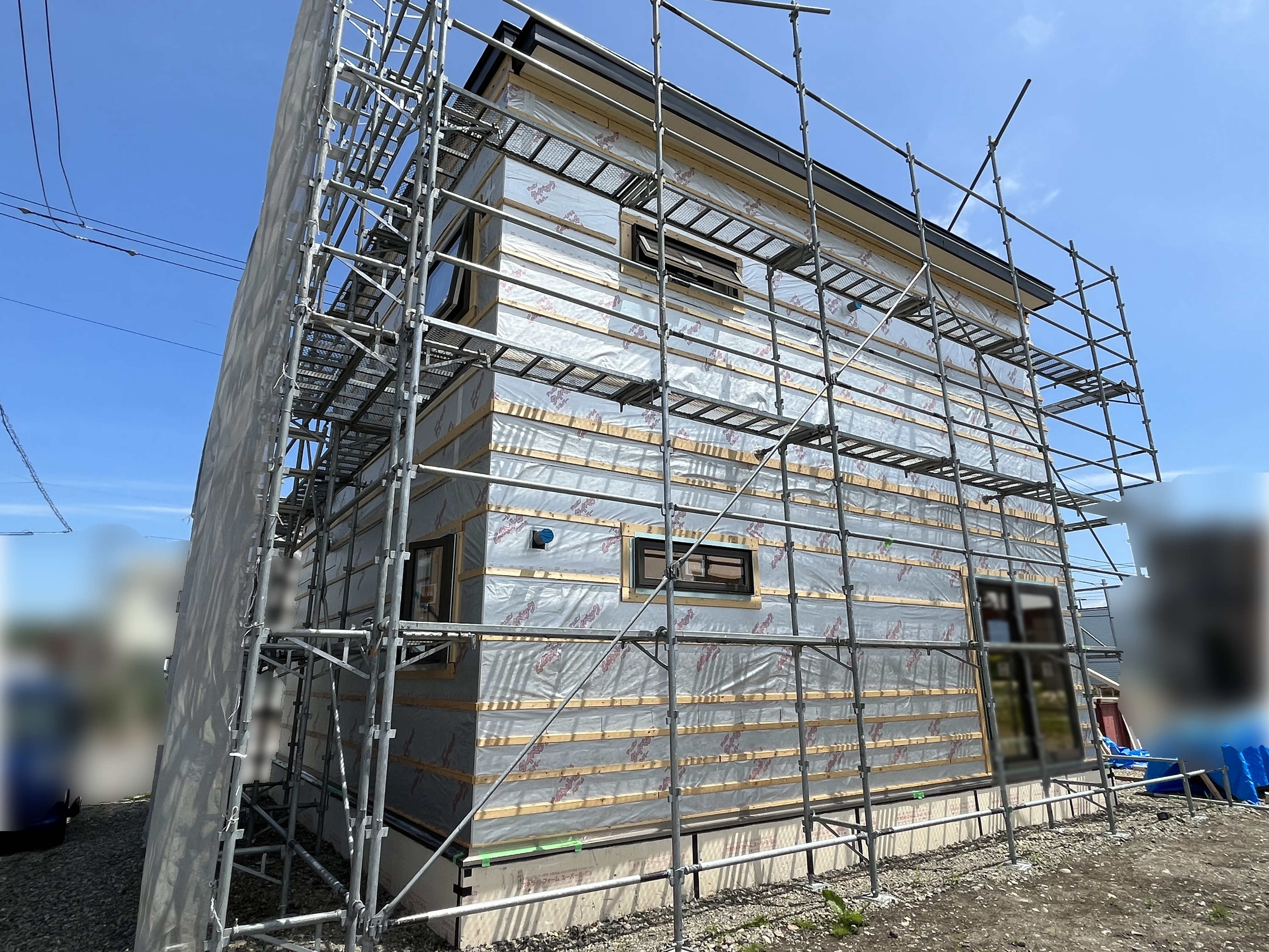 外壁全面に、「タイベック®シルバー」という透湿・防水・遮熱の機能があるシートが貼られています。