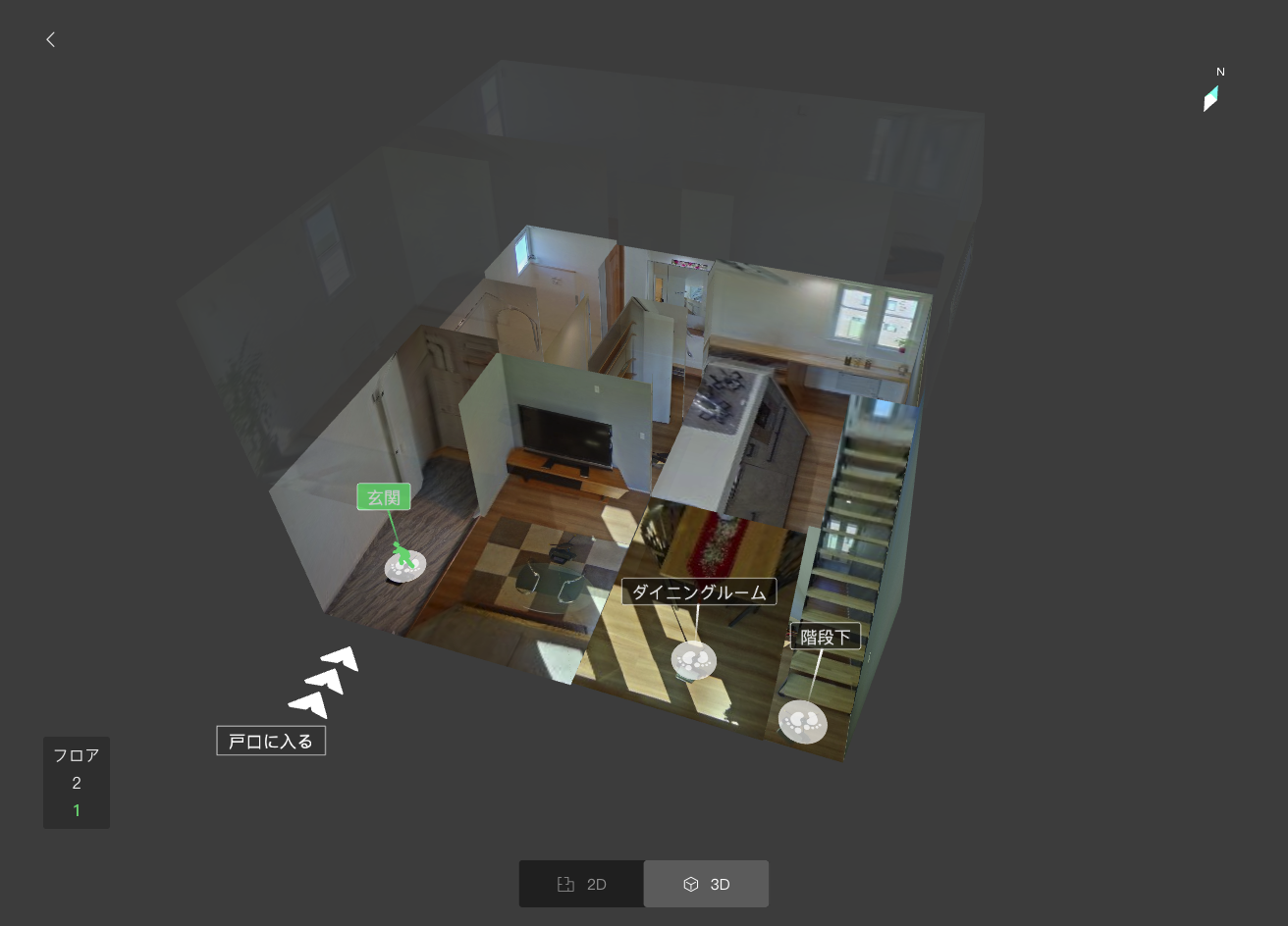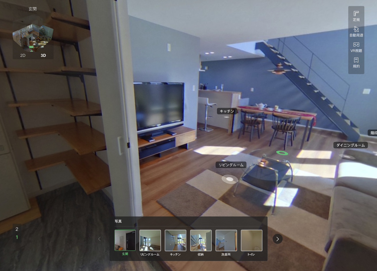 360度パノラマ写真を元に3D内観のデータも出来上がり、お使いのスマートフォンから見学できるようになりました!
