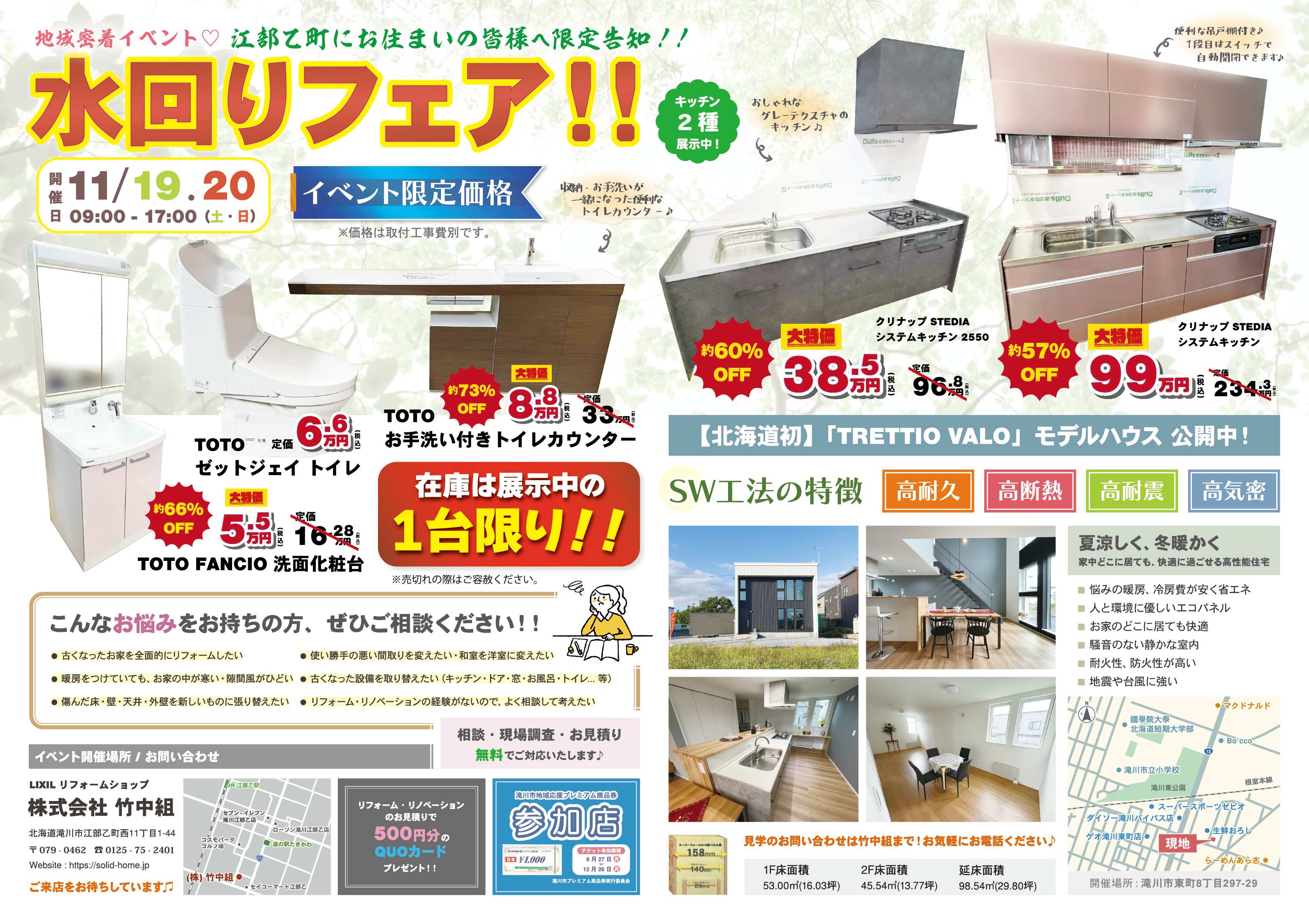 11月の19.20日に江辺乙町限定イベント「水回りフェア」を行いました!