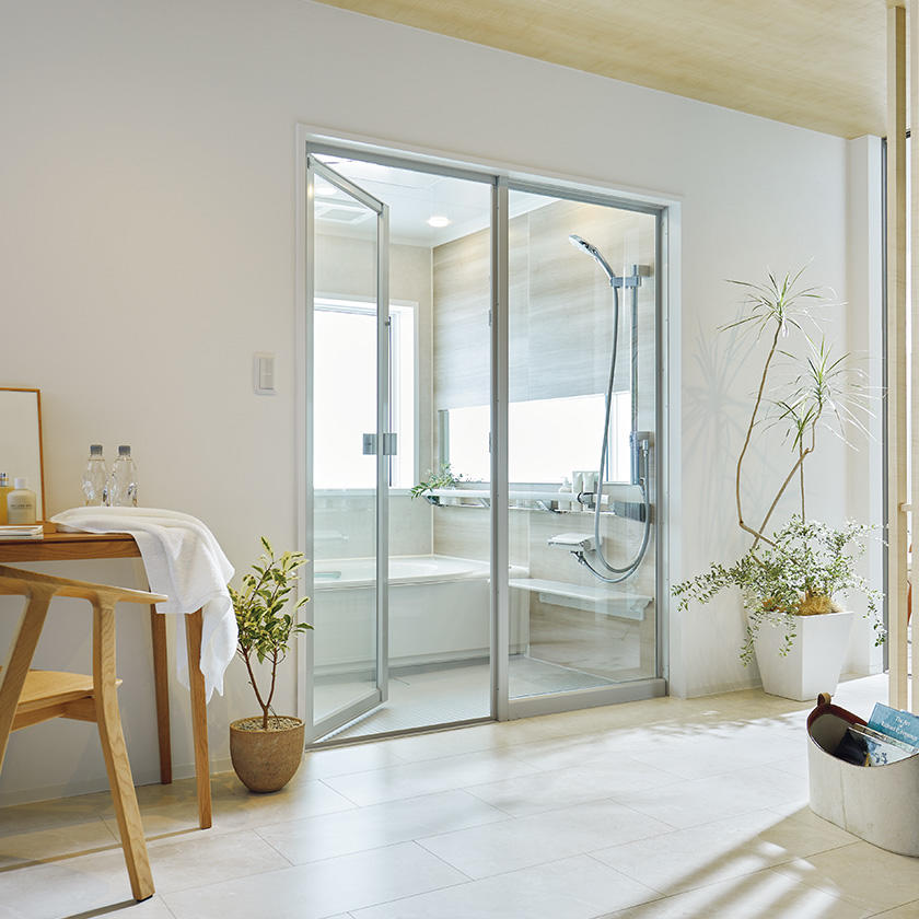 ゆったりできるバスタブ、さっと浴びられるシャワー。収納もカウンターもお好みにアレンジして使えるフレキシブルなバスルームです。