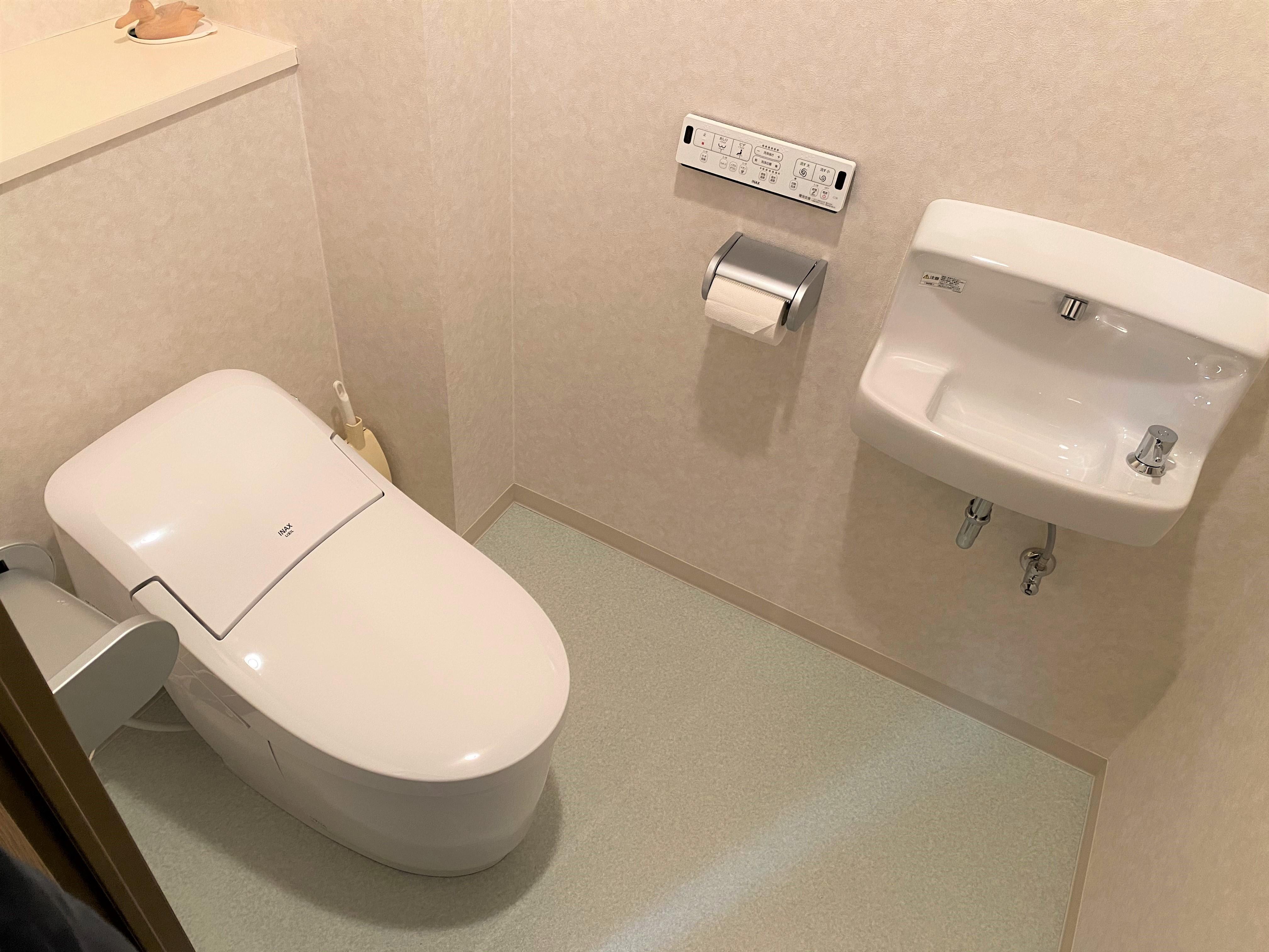 タンクレス風(実際はタンクが搭載されています)のトイレに変更、手洗い器を含めたアクセサリー類も一新して、お掃除しやすくスッキリしたトイレ空間に仕上がりました。