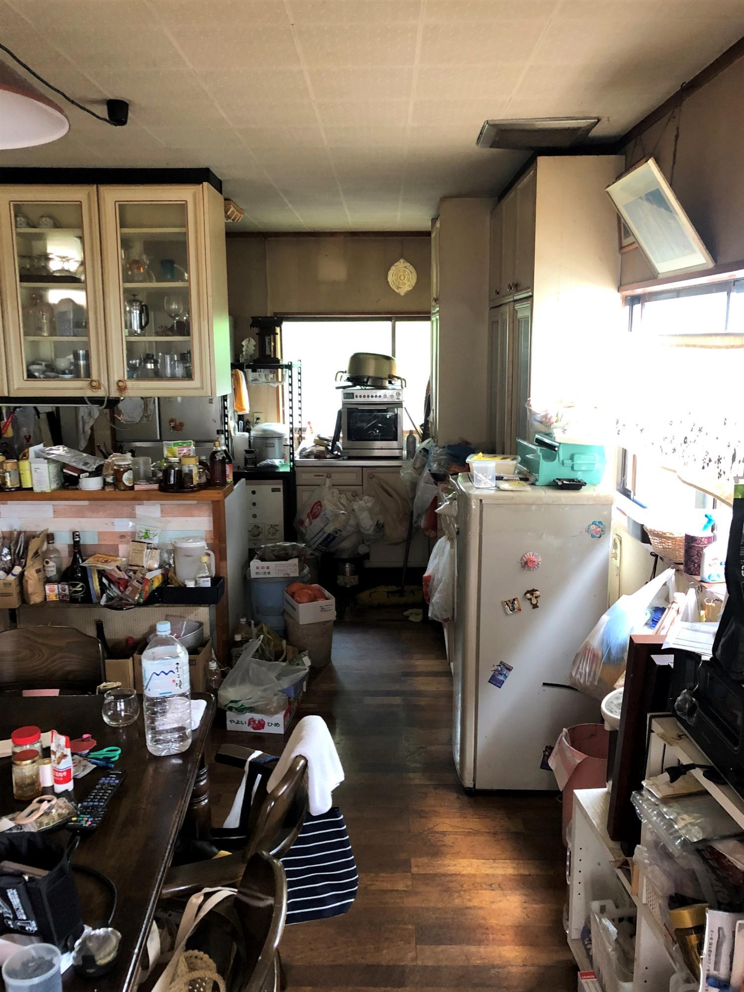 冷蔵庫の隣にあった勝手口スペースの1畳分を増築し、L型の対面キッチンをI型の壁付キッチンへリフォームしました。キッチン空間とリビングダイニングを分断するように配置されていたキッチンを、空間の片側に寄せることで非常に広々としたLDK空間になりました。