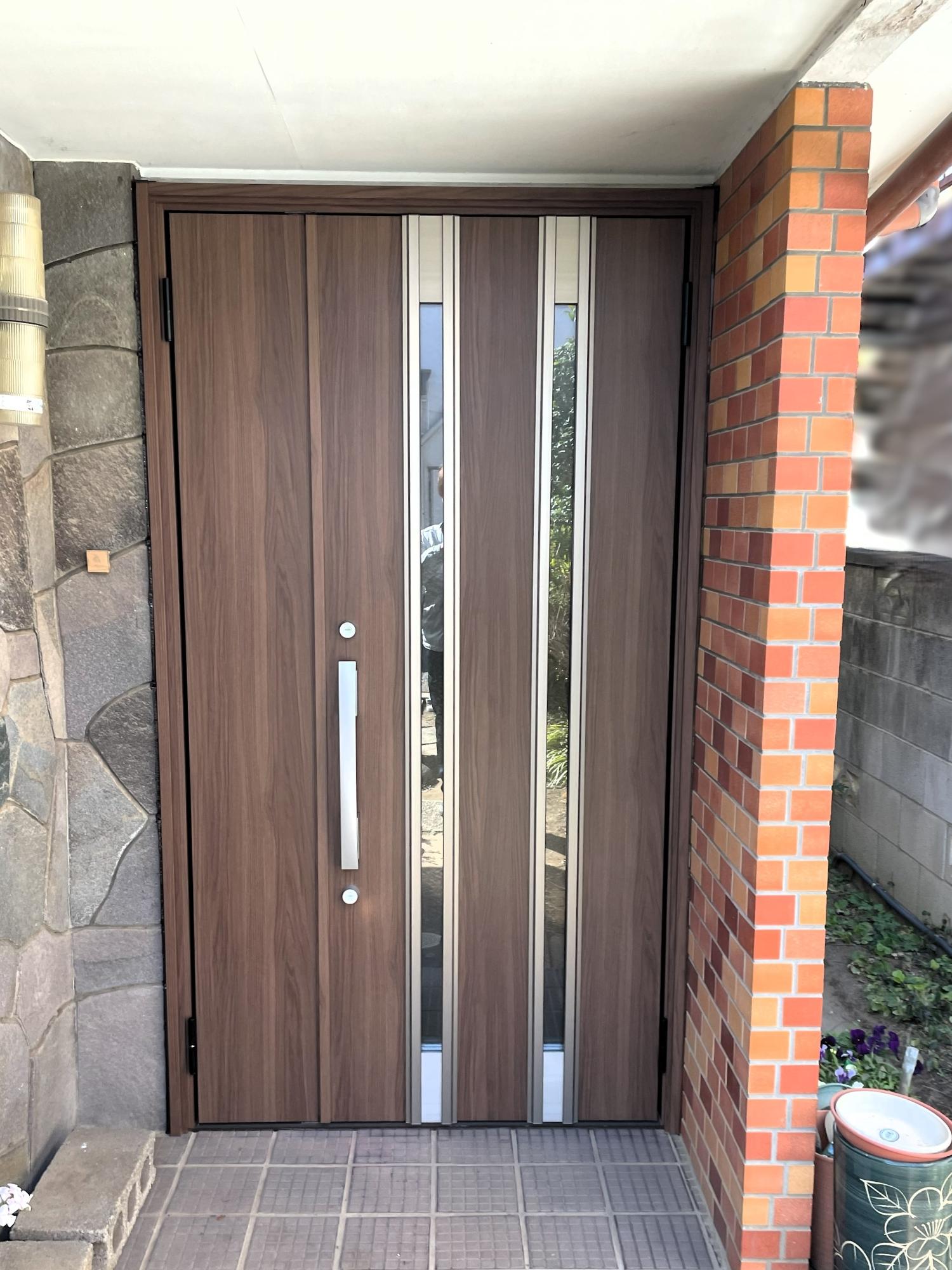 ドアの閉まりが悪く、防犯上のことも気にされていらしたN様。 今回、外壁のリフォームと合わせて玄関ドアの交換もご依頼いただきました。 握って捻るタイプのドアノブから軽い力で引けるバータイプになり 出入りがスムーズに行えるようになりました。 また、欄間ありからなしのデザインになり、見た目がすっきりしただけでなく お家の顔としての存在感が出て、玄関まわりが引き締まった印象になったと思います。 性能面でも断熱仕様のドアになったことで、玄関~廊下にかけての 冬場の寒さが軽減され、室内側にもメリットが生まれました。 これからは、毎日のお出かけの際そしてお帰りの際に、 ストレスなく気持ちよくご使用いただければ幸いです。