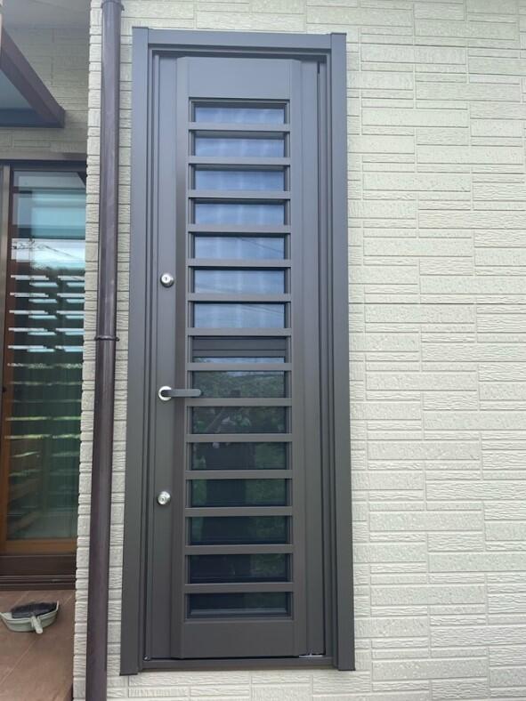 断熱タイプの勝手口ドアに取替。 閉めたまま風も取り入れできます。