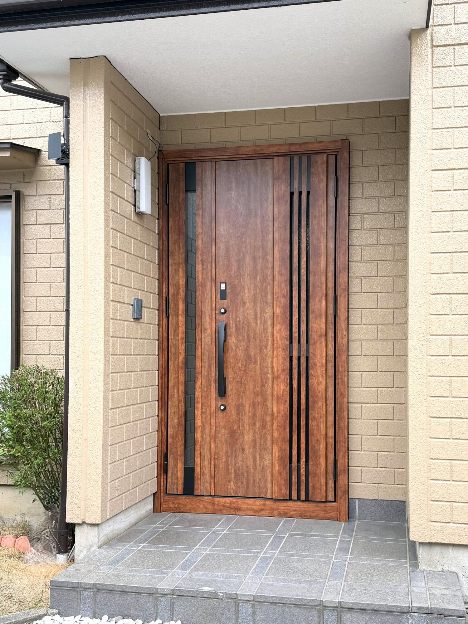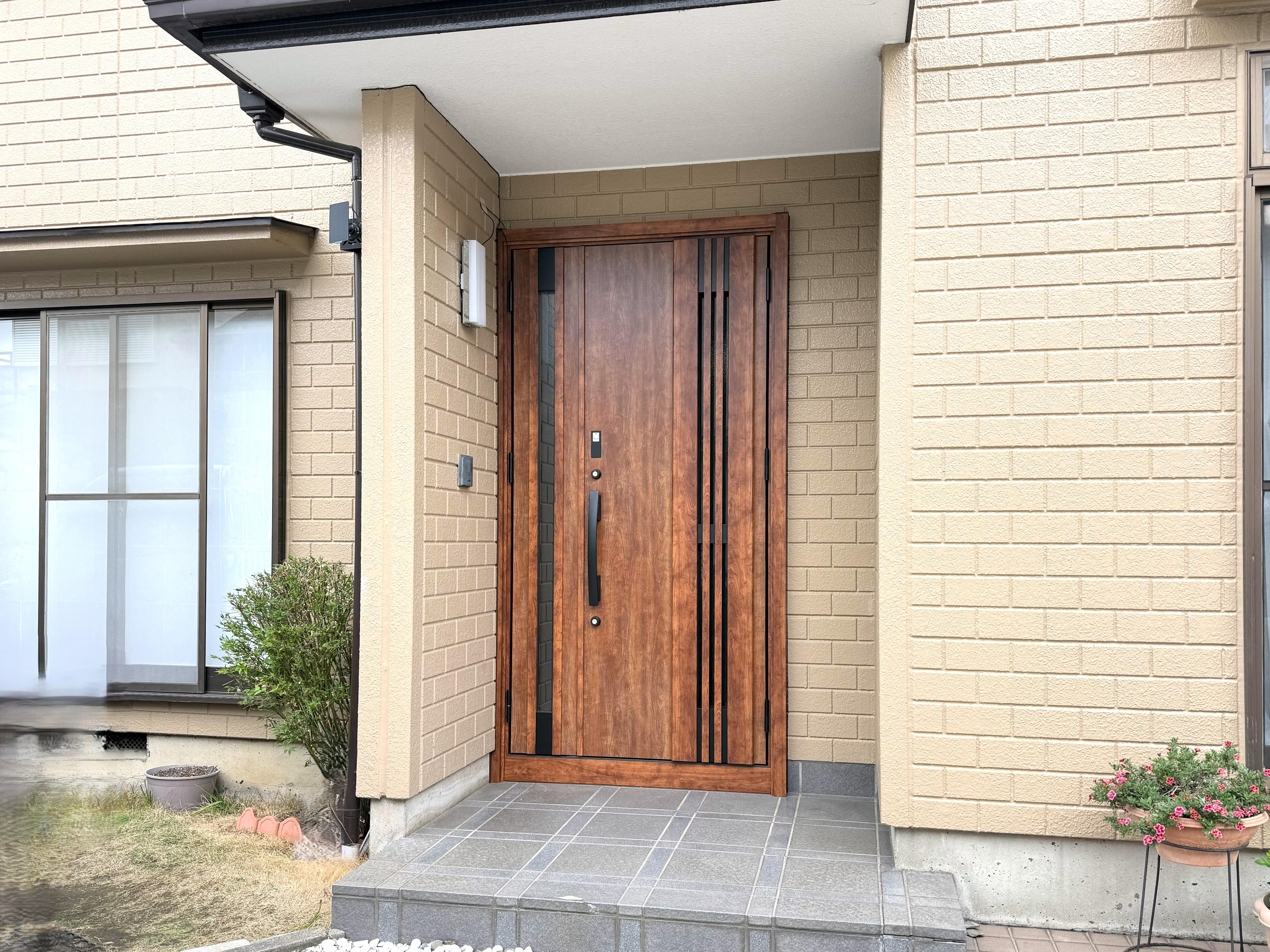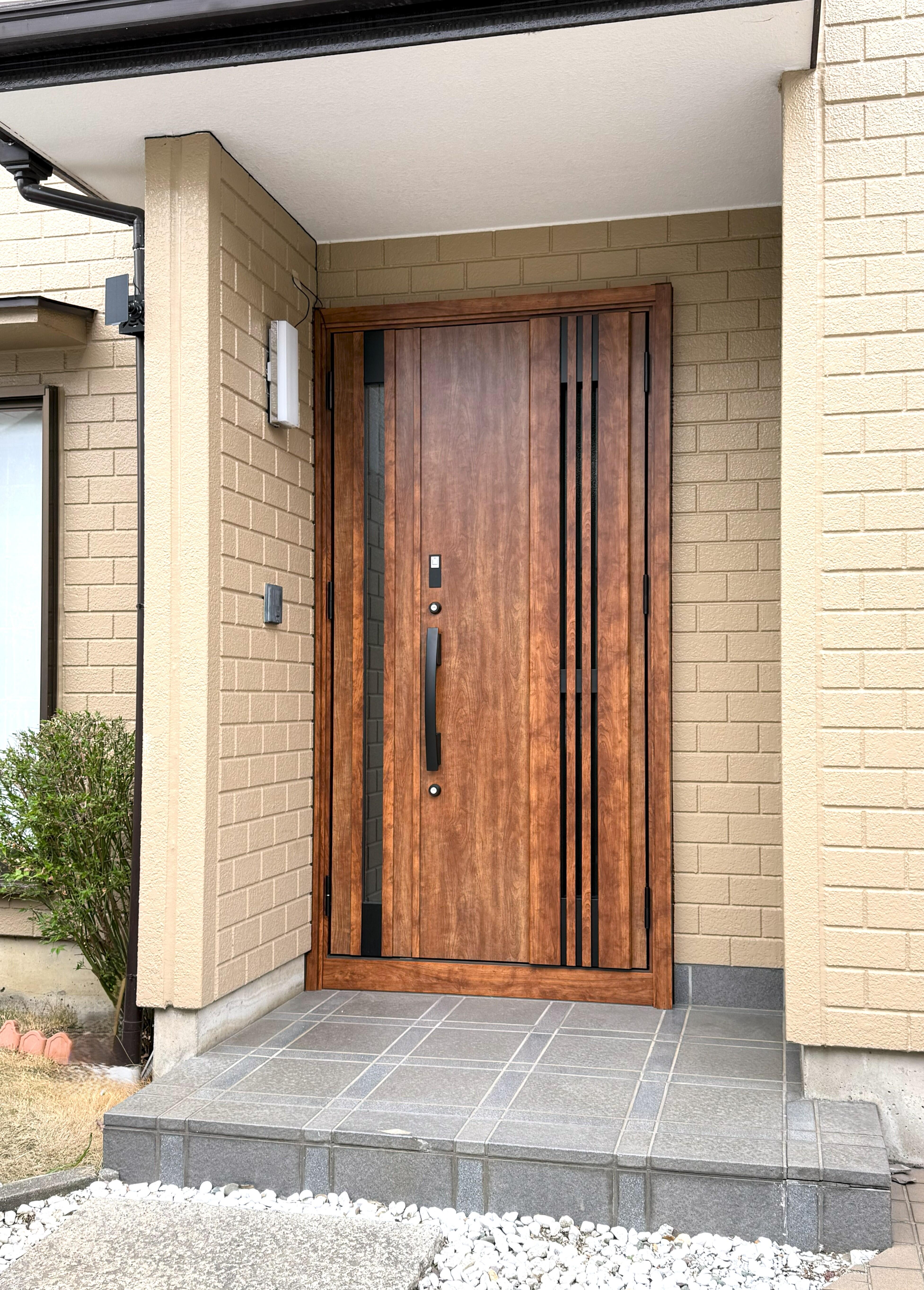▶LIXILご採用製品 ・リシェント玄関ドア3 親子ドア(欄間なし) ・デザイン:M83型 ・色:ハンドダウンチェリー