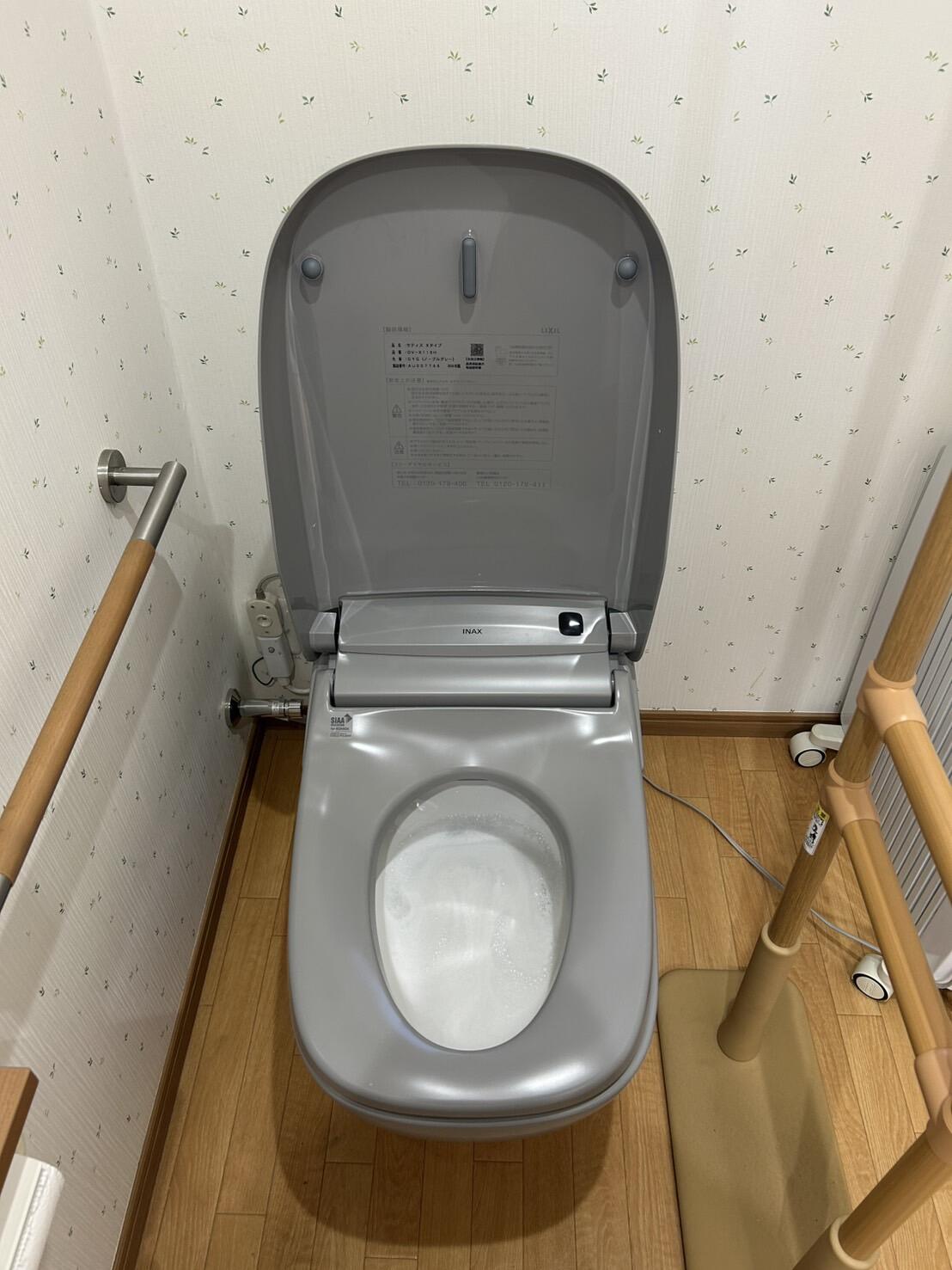 シャワートイレが使えなくなったと増改OB様よりお電話頂きました。 お掃除が楽な方がいいと仰られていたためサティスXをお勧めさせていただきました。 お客様のご要望により色はグレーでご選定。 シャワートイレが使えないと困ると仰せでしたので最短で工事をさせていただきました。