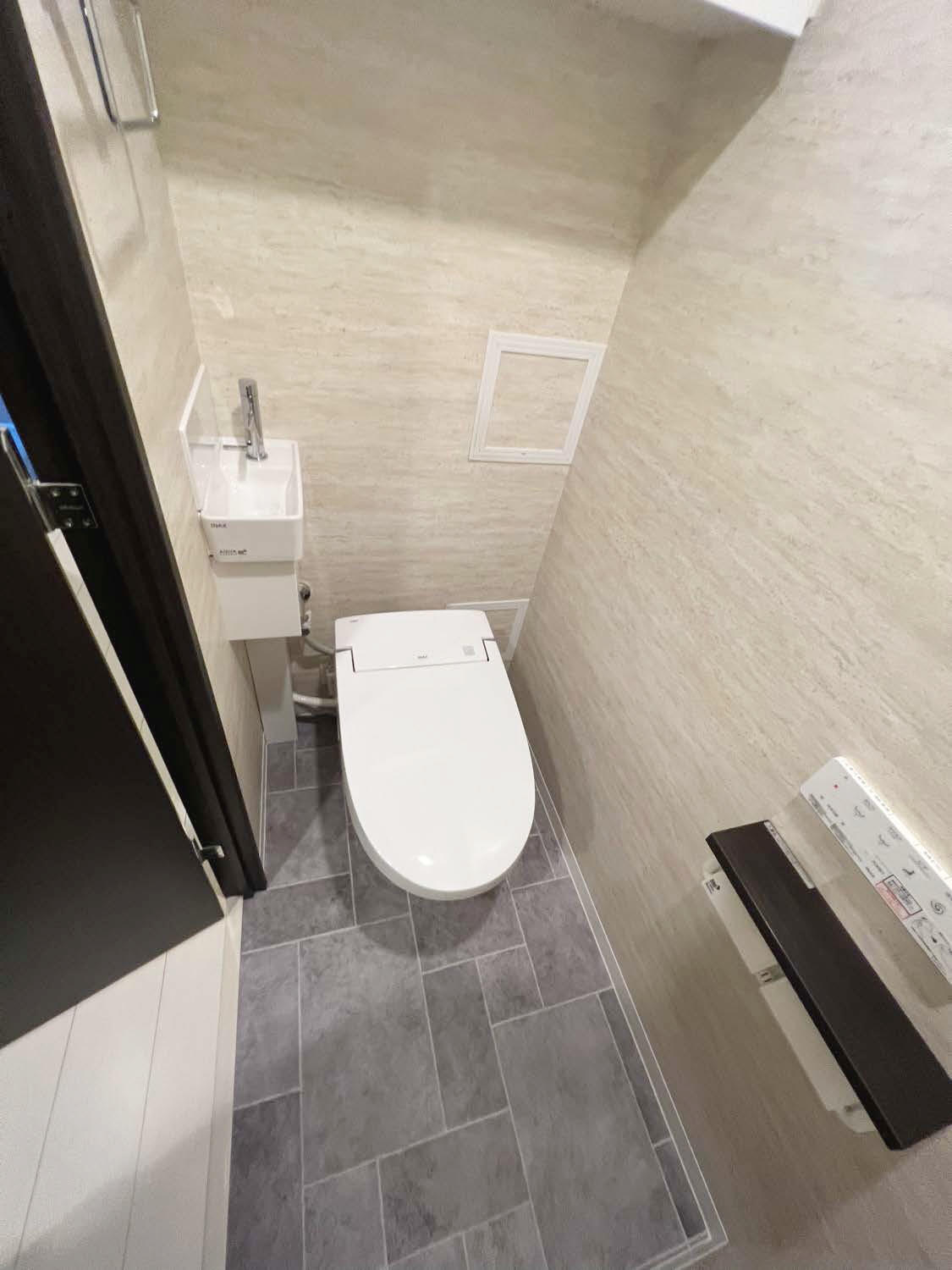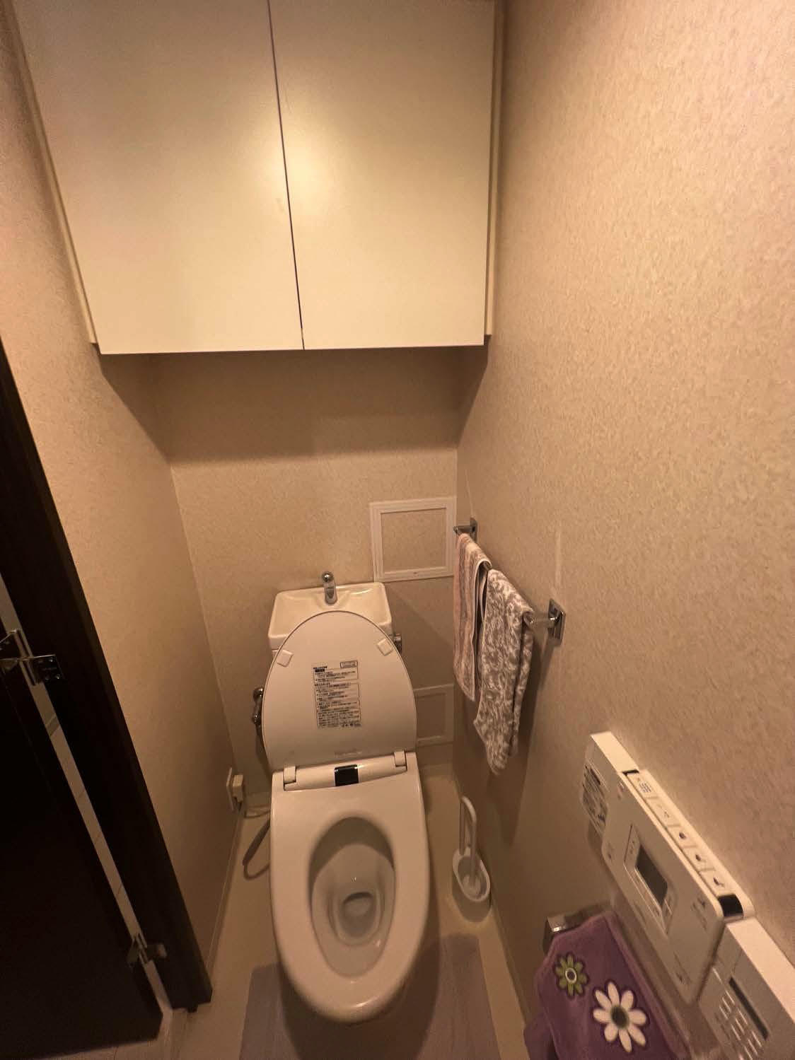 もともと綺麗にお使いになられていたお客様でしたが古さが気になりだし、せっかくなので新しいトイレに 交換を検討しながら既存のトイレより部屋が広く使えるタンクレストイレのサティスを採用して内装も デザインクロスで仕上げホテルの様な内装のトイレに生まれ変わりました! お客様も大変満足されていて安心しました。